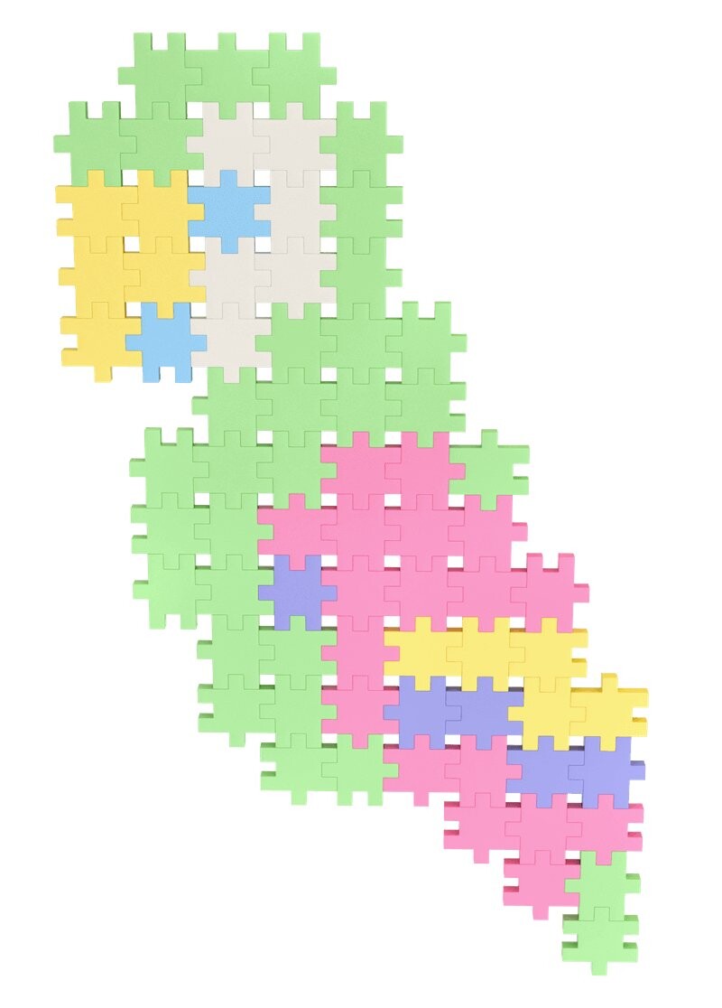 Элементы, выполненные в форме пазла, легко объединяются в причудливые композиции. Пастельные тона и интересные возможности компоновки позволяют долго творить. В набор также входят вдохновляющие инструкции. Идеально подходит для подарка.