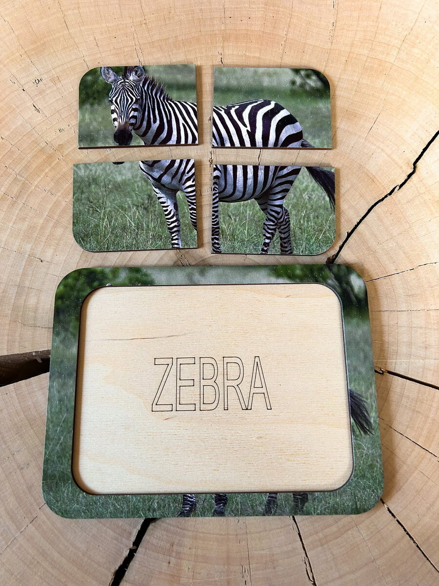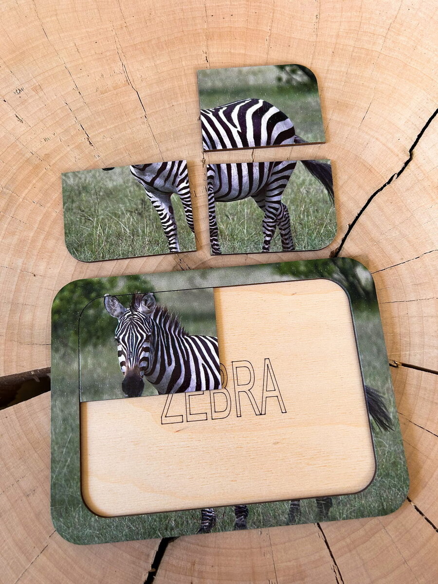 Пазл из 4 частей с настоящей графикой зебры — отличный образовательный инструмент, сочетающий в себе развлечение и обучение. Он идеально подходит для самых маленьких детей, поддерживая их развитие на многих уровнях.Преимущества: