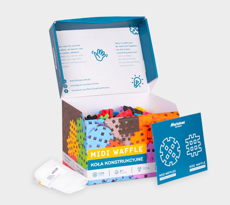 Выбирая кубики Marioinex, вы выбираете не только игрушки, но и инвестируете в развитие и счастье своего ребенка. Присоединяйтесь к обширному сообществу довольных клиентов сегодня и узнайте, как кубики Marioinex способствуют развитию вашего ребенка и приносят радость. Серия блоков Midi представляет собой немного увеличенную версию блоков Mini Waffle. Конструкторы из блоков Midi Waffle - отличная идея разнообразить игру, ведь этот набор можно комбинировать с любым другим набором из серии Midi Waffle. Всего в наборе целых 120 элементов! Колеса строительные Midi Blocks 120 шт. Серия блоков Midi Wafle представляет собой немного увеличенную версию блоков Mini Wafle. Набор строительных колес Midi состоит из 120 элементов 10 цветов. Это фантастическая идея, чтобы разнообразить развлечения вашего ребенка. ведь этот набор можно комбинировать с любым другим набором из серии блоков Midi Waffle. Блоки Marioinex благодаря специально разработанной форме соединяются друг с другом различными способами, предоставляя неограниченные возможности строительства. Весь набор был упакован в эстетичную прочную картонную коробку, а также в комплекте был специальный мешок, предназначенный для мытья блоков в посудомоечной машине. Фантастическая альтернатива содержанию детских игрушек в чистоте.