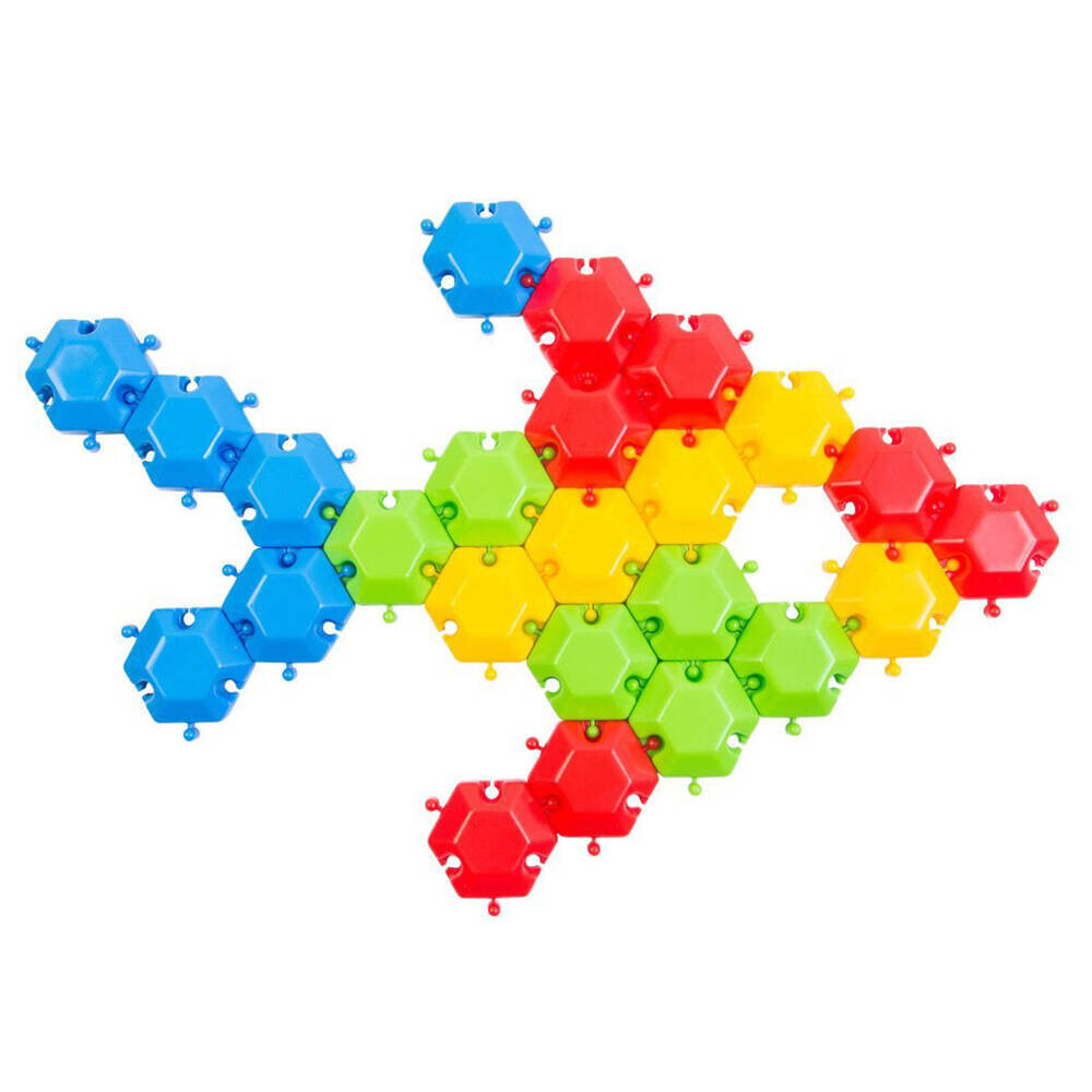 В набор входят 32 красочных кубика-пазла. Система сборки облегчает соединение элементов, благодаря чему дети могут создавать оригинальные здания, транспортные средства, животных, цифры, буквы, геометрические фигуры и множество других интересных фигур. Блоки можно укладывать как вертикально, так и горизонтально. Пазл упакован в эстетичную картонную коробку, идеален в качестве подарка. Игрушка изготовлена из качественного, безопасного материала.