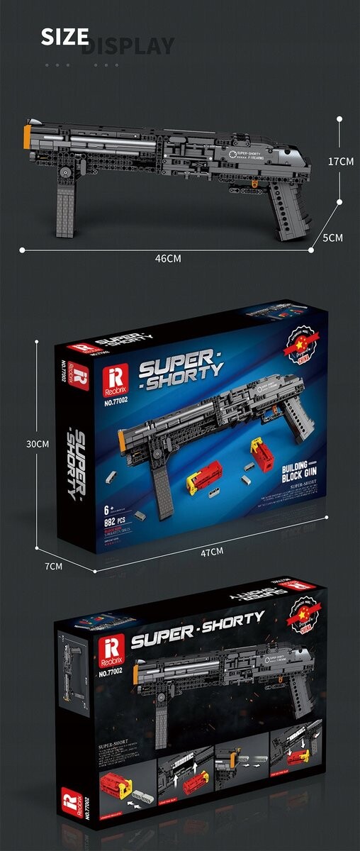 Помните, как Арнольд Шварценеггер преследовал Джона Коннора в «Терминаторе»? Легендарная копия Reobrix Super Short позволит вам почувствовать себя героем Терминатора. Этот набор из 882 прецизионных деталей имеет короткий ствол, который облегчает маневрирование и обеспечивает высокую останавливающую способность.