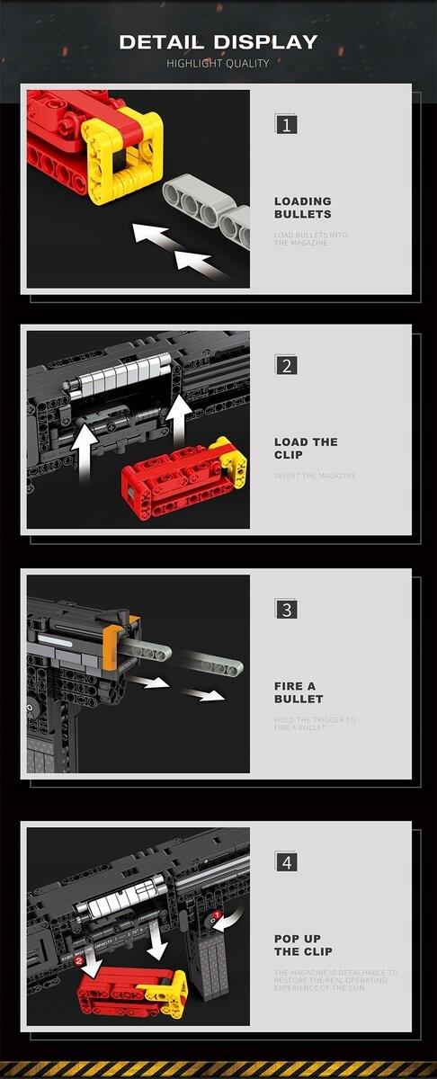 Reobrix также гарантирует высокое качество изготовления – все блоки изготовлены из экологически чистых материалов. что обеспечивает их долговечность и безопасность. Оригинальная упаковка делает этот набор идеальным подарком для каждого любителя моделирования и огнестрельного оружия.
