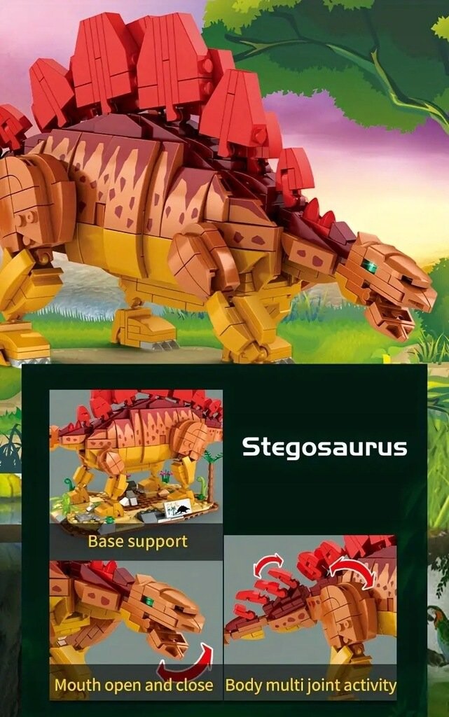 Стегозавр станет прекрасным дополнением к коллекции динозавров вашего ребенка. Он состоит из 697 элементов и представляет собой реалистичную копию юрского зверя в уменьшенном варианте. Имеет множество движущихся частей тела.