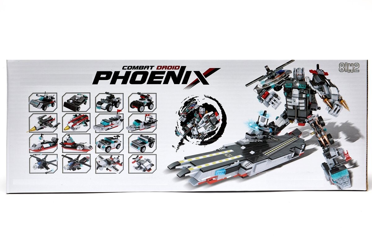 Блоки боевых дроидов Phoenixнабор из 8 комплектов = 16 версий транспортных средств + БОЛЬШОЙ АЭРОПОРТ ИЛИ ДРОИДКаждое транспортное средство может быть построено в двух версиях.  Используя все наборы, вы сможете собрать мощного дроида или авианосецЧто-то для любителей боевых машин и для детей от 6 лет Машины для самостоятельной сборки.