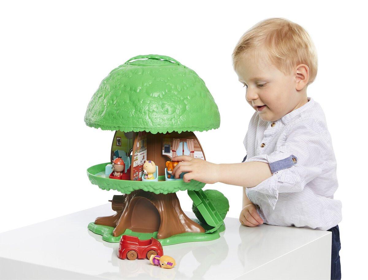 Новинка от производителя Жирафа Софи, набор «Волшебное дерево Клорофил» включает в себя: домик на дереве, 2 животных, автомобиль, 2 кроватки, стол, 4 стула, диван. Кресло. Для сборки игрушки необходим взрослый человек. В комплект поставки входит инструкция. Игрушка для детей от 18 мес.