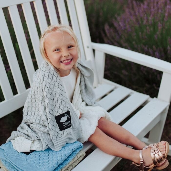 Плетение/узор одеяла: ажурное. Размеры одеяла: 80 х 100 см. Размеры упаковки: 16 х 25 х 7 см. Артикул: LEM-016 Сертификат Oeko-Tex стандарт 100.