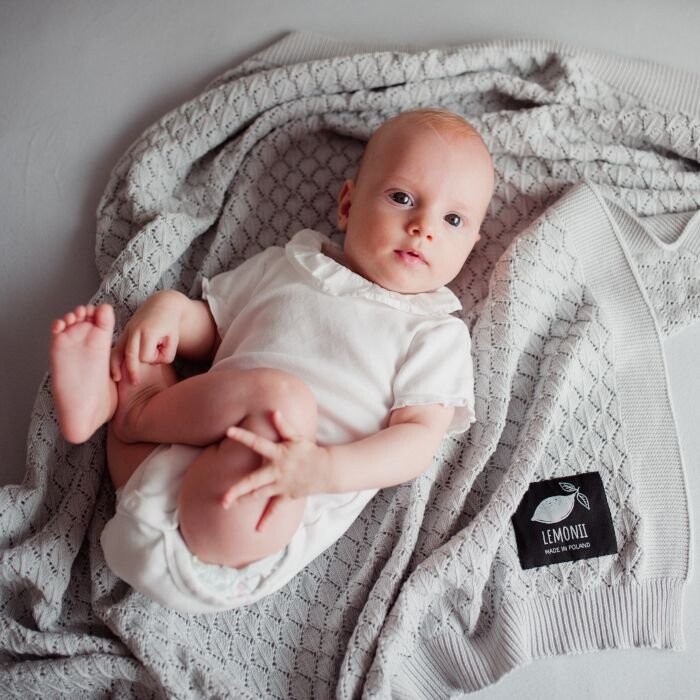 Детское Одеяло Серое Ажурное 100% Хлопок Lemonii