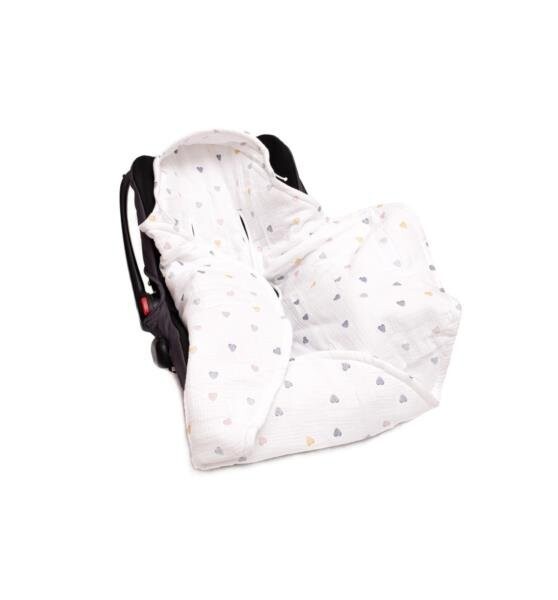 Муслиновое одеяло на автокресло - Разноцветные сердечки