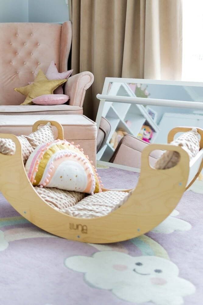 Мягкое покрывало для качалки позволяет комфортно пользоваться деревянной игрушкой. Яркие цвета побудят детей весело провести время. Ваш ребенок также может отдохнуть на одеяле после физической активности. Одеяло выполнено из ткани минки. Деревянная детская качалка – аксессуар для тренировки равновесия. Он укрепляет мышцы-стабилизаторы и помогает развить чувство равновесия.