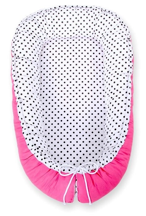 Двусторонний детский манеж-кокон BOBONO премиум-класса - черный в горошек/темно-розовый