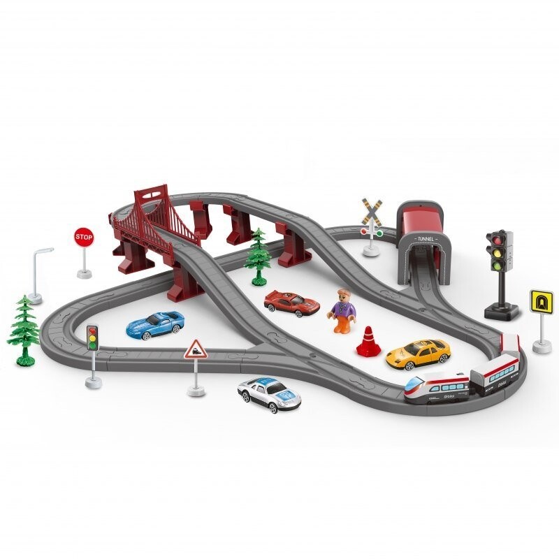 Электропоезд известного бренда Woopie – идеальное предложение для наших моторизованных детей. Красочный поезд восхищает детей всех возрастов, даря множество аттракционов и бесконечные эмоции. В наборе 80 элементов, среди которых: в . современный локомотив на батарейках, прочные элементы гусеницы, дорожные знаки и игрушечные машинки. Однако эта игрушка – это не только море удовольствия, но и большие возможности для развития ребенка. Малыш учится во время игры! Особенно развиты пространственная ориентация, техническое чутье и, конечно же, воображение. Поезд упакован в оригинальную коробку, идеален для подарка. Характеристики: - с 3-х лет, - 80 элементов, - современное качество изготовления, - упаковано в оригинальную коробку, идеально подходит в качестве подарка. В комплект входят: - локомотив (приблизительно 12 х 5 см) (питается от 2 батареек ААА, не входят в комплект), - 2 вагона, - 4 разных автомобиля, - фигурка, - туннель, - мост, - рельсы. опоры - дорожные знаки. Игрушка развивает: - моторику, - логическое мышление, - творческие способности, - воображение. У игрушек бренда Woopie одна цель – сделать детей счастливыми! Среди богатого ассортимента Woopie есть, среди прочего, деревянные игрушки, кукольная одежда, игрушки с дистанционным управлением, а также подвесные качели, пенопластовые игрушки, коврики, различные виды садовых игрушек и многое другое! Позвольте себе увлечься весельем - позвольте себе увлечься Woop!