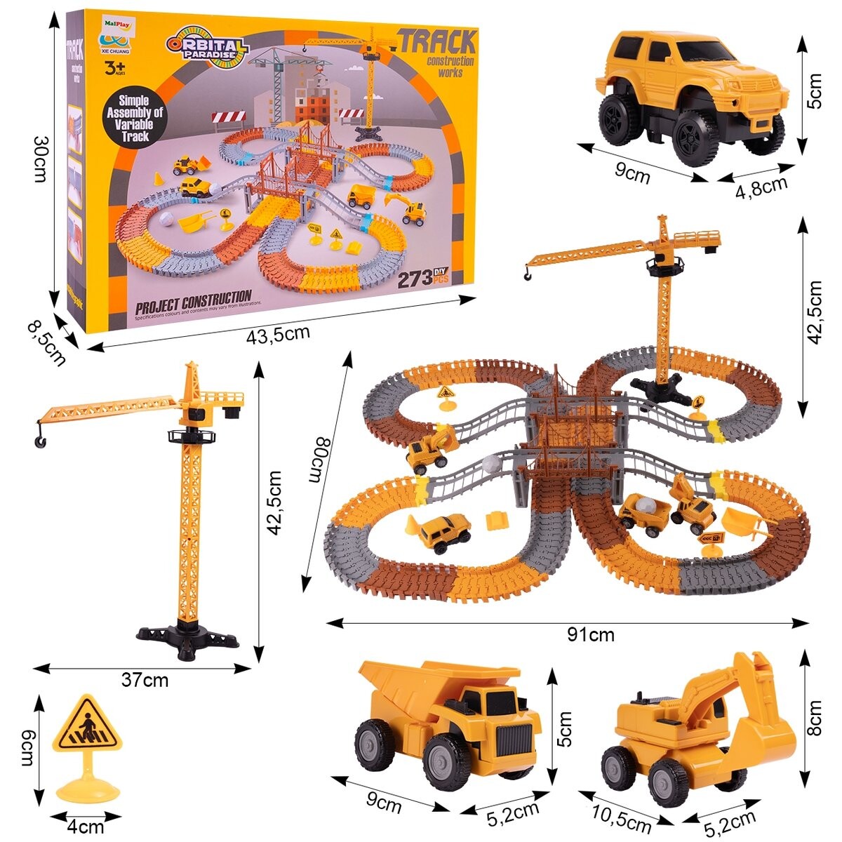 Помимо основного привода автомобиля, который движется прямо по трассе, комплект оснащен тремя рессорами. Каждый автомобиль из коллекции уникален. Как и на стройке, в нашем наборе также есть экскаватор, самосвал и бульдозер. Пружины имеют ручной привод, который... что однажды придя в движение, они не остановятся быстро. Вот вся коллекция — так что приглашайте друзей и получайте удовольствие от этих уникальных автомобилей.