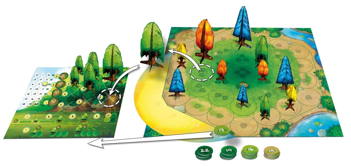 Цель игры — провести ваши деревья через весь жизненный цикл (от семени до величественного дерева) и собрать жетоны подсчета очков в зависимости от плодородия почвы. на котором росла наша растительность.