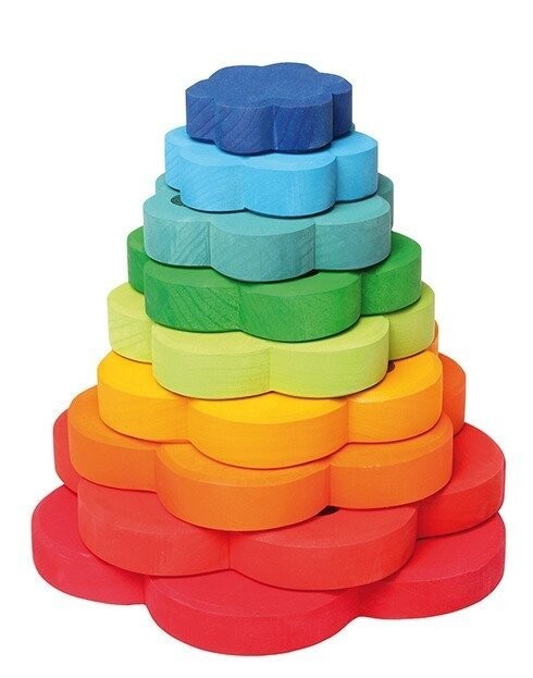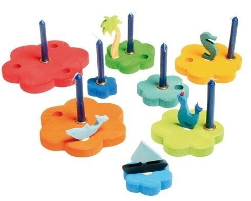 Башня – это, конечно, не только эстетические ценности. Во-первых, это отличная игрушка. Ребенок может оформить это по-разному. Он может отказаться от стойки и играть шайбами отдельно. Он может их сортировать. Его можно комбинировать с другими кубиками и игрушками Гримм, используя как элемент более сложных конструкций или назначая им любую функцию по собственному воображению. Интересное решение – разместить в цветах места для свечей, цифр или фигурок братьев Гримм (приобретаются отдельно). Во время всех этих занятий дети отрабатывают мануальные навыки, учатся точности движений и зрительно-моторной координации.
