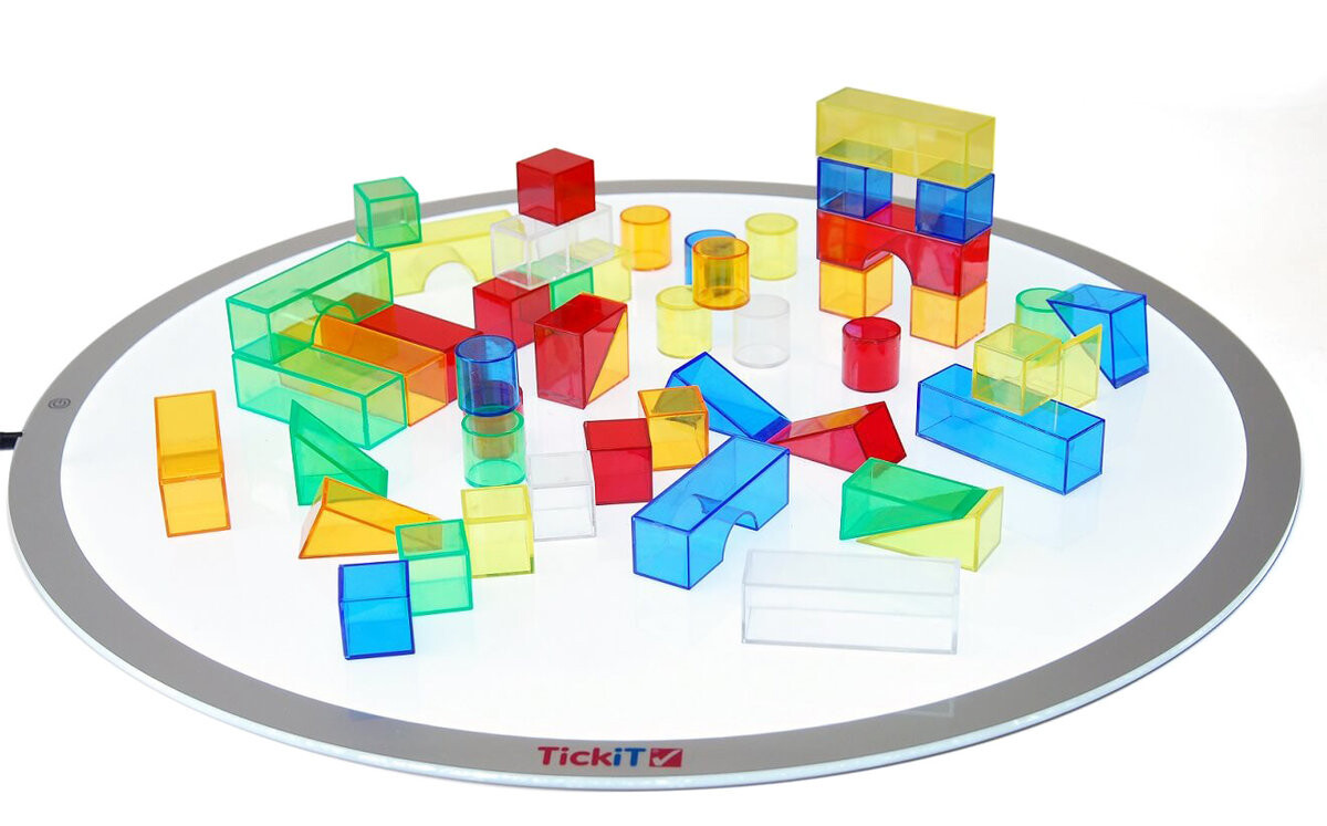 Большой набор строительных блоков - это отличная игрушка для каждого ребенка. Прозрачные блоки разных цветов не только позволяют создавать удивительные конструкции, но и позволяют играть со светом. Чтобы еще больше разнообразить веселье, используйте светодиодную доску с подсветкой для сенсорной интеграции.