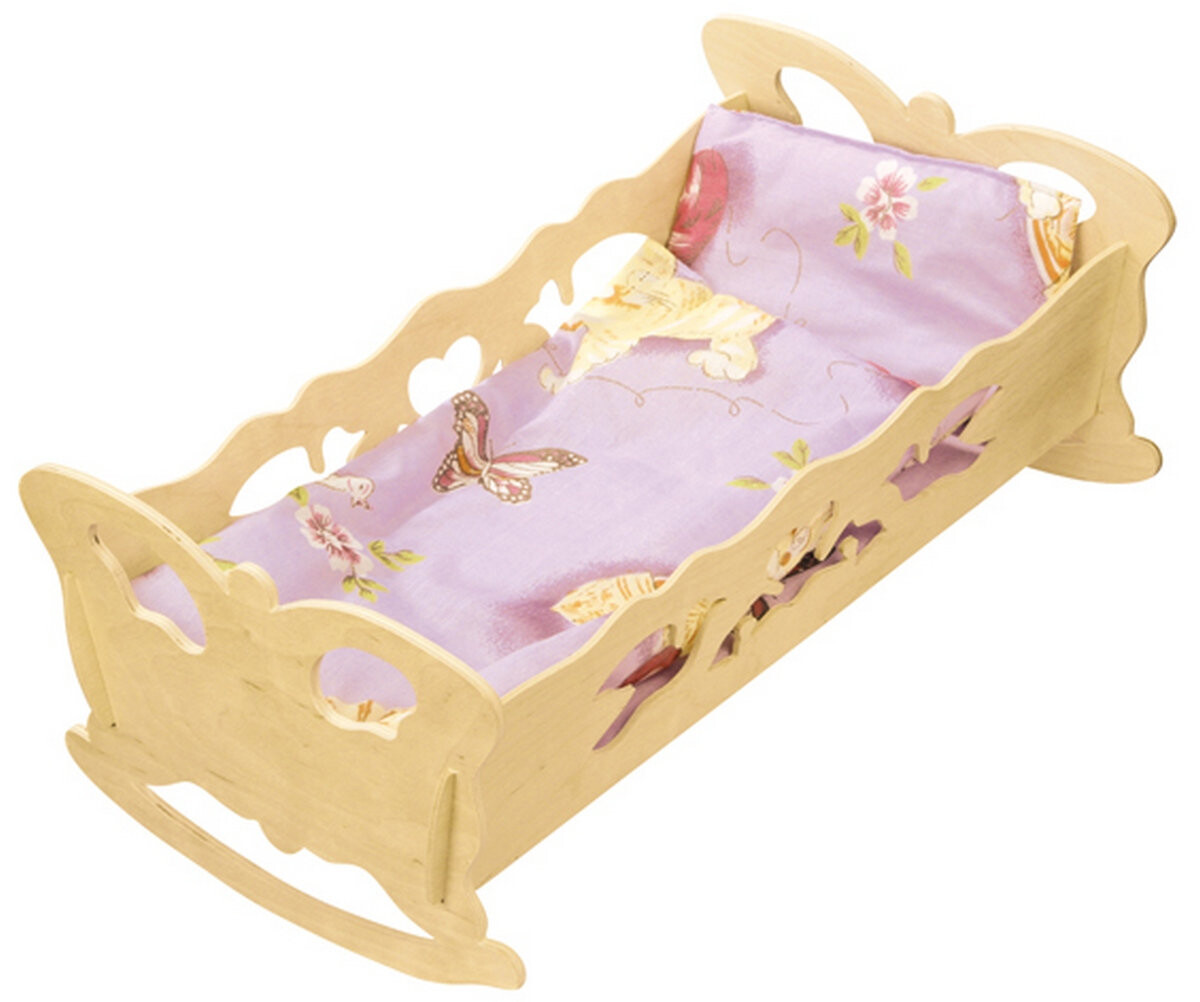 Колыбелька отличается не только красивым внешним видом и формой, но прежде всего изготовлена из дерева с исключительным вниманием к каждому элементу. Отсутствие острых краев делает изделие полностью безопасным. Уход за любимой куклой или плюшевым мишкой – одна из любимых игр девочек, а игра с такой колыбелькой доставит массу удовольствия. Дети с большим вниманием и любопытством наблюдают за своими родителями и стараются взять на себя роль взрослых, поэтому стоит предоставить игрушки, которые дадут им возможность играть роль заботливой матери. Игры с колыбелью помогут вашему ребенку развить творческие способности и воображение, разыгрывая сценки и роли из взрослой жизни. Более того, ребенок приобретает новые навыки, которые придадут ему больше уверенности в повседневной деятельности. Колыбелька – это игрушка это мечта каждой девочки, которую невозможно пропустить в детской комнате! Колыбельку можно раскрасить по вашему желанию. В люльке поместится кукла длиной 50 см!Деревянная колыбелька для кукол с аксессуарами