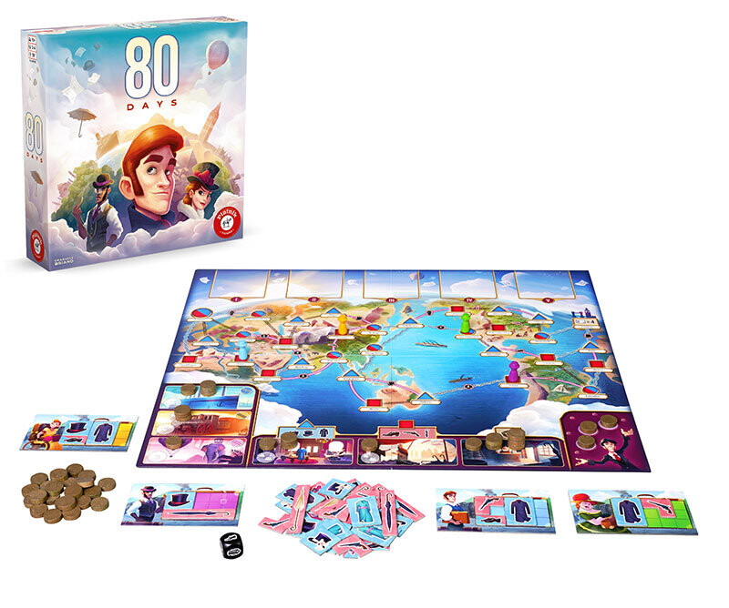 Как и в оригинальном романе, британская столица Лондон является начальной и конечной точкой захватывающего путешествия в «80 дней». Следуя по стопам английского джентльмена Филеаса Фогга, вы сможете весело путешествовать из города в город на корабле, поезде или воздушном шаре. К сожалению, стоимость поездок постоянно растет, поэтому бесплатные поездки пользуются большим спросом, чтобы сэкономить ценные монеты. Штормовая погода, разбитые трассы плохая видимость или таможенный контроль постоянно создают новые проблемы для кругосветного путешествия. Полезный багаж можно приобрести в бутике, на базаре – или на черном рынке. Конечно, если у вас достаточно денег, потому что, как и расходы на поездки, цены постоянно растут во всех сферах рынка. Не менее важно хорошо упаковать вещи и сэкономить место, поскольку каждый чемодан на персонализированных досках персонажей имеет только определенную вместимость.