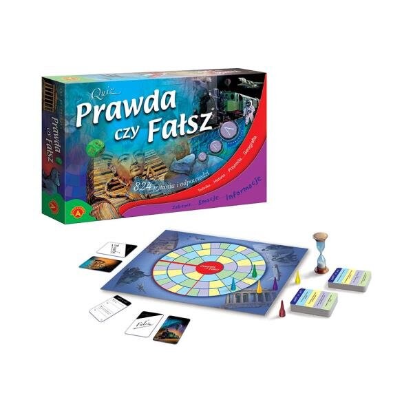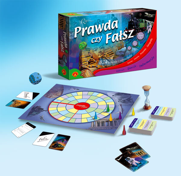 Отличное развлечение, море эмоций и много интересной информации – все это будет доступно участникам игры «Правда или ложь». Победа в этой игре зависит главным образом от того, правильно ли игрок определит ранее прочитанную с карты информацию как правдивую или ложную. Высказывания, прочитанные во время игры, касаются четырех областей: истории, технологий, природы и географии. Шансом выиграть игру воспользуется один игрок, но каждый участник узнает много интересной информации.