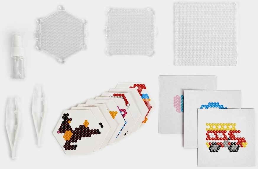 Водные бусины – это большой решение для небольших конструкторов. Просто расположите бусины узором на основе, а когда закончите, сбрызните их водой, чтобы соединить бусины. В комплект входит все от А до Я. Это отличное развлечение, которое помогает вашему ребенку развивать моторику.