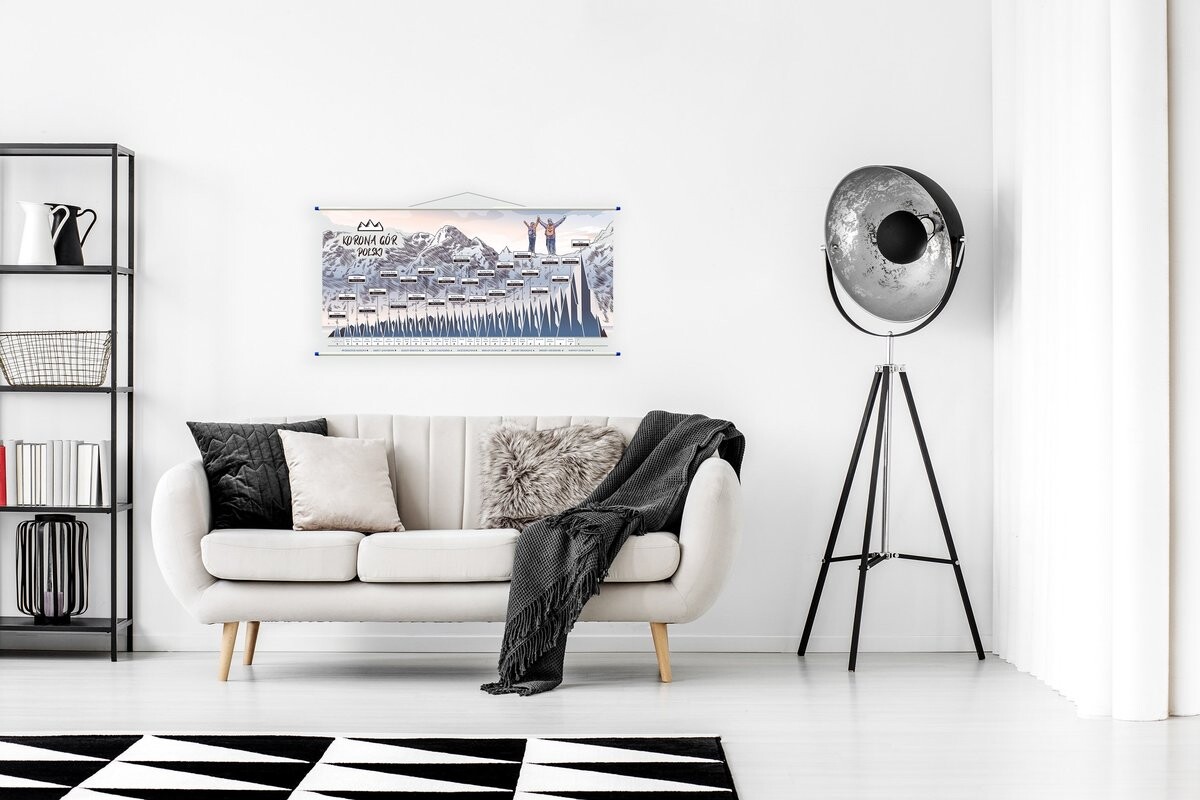 Доска — своеобразное изображение горных экспедиций. Он станет прекрасным дополнением интерьера людей, регулярно отправляющихся в пешие походы. Пики представлены в порядке от наименьшего к наибольшему. Это привело к интересному пространственному эффекту. Помимо высокой эстетической ценности, графика также позволяет планировать последующие поездки. потому что он содержит текущие данные о высоте. Это дает вам контроль над своим прогрессом и позволяет определить, какой будет ваша следующая цель.