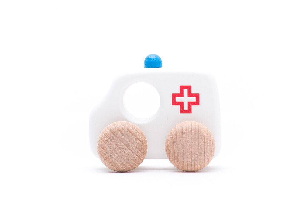 Это скорая помощь! Когда он ускоряется, все уступают ему дорогу. Что делает эту машину особенной? У машины скорой помощи на крыше есть светофор, а на кузове таблички и светоотражатели, чтобы все могли видеть ее издалека. Размер машинки подбирается под возможности рук ребенка. Однако абстрактная форма, мягкие формы изгибов и правильно подобранные размеры отверстий позволяют обнаружить хват пальцев и распознать формы. Каждое движение игрушки – толкание, перекатывание, катание по изгибам мебели – это также открытие пространства и динамизма, скрытого в теле.