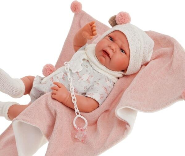 Компания Antonio Juan специализируется на производстве кукол, которые выглядят и чувствуют себя как настоящие дети. Куклы Антонио Хуан – это гарантия отличного качества изготовления. Они на 100% сделаны вручную в Испании. Приобретая эту куклу, вы можете быть уверены, что это фирменный товар, соответствующий строгим стандартам безопасности игрушек CE. Испанские куклы Антонио Хуан радуют своим внешним видом, осязанием и, прежде всего, очень высоким качеством исполнения. Компания Antonio Juan приложила все усилия, чтобы подарить вашей дочери чудесные и незабываемые воспоминания после игры с куклой.  КУКЛА: LEA CONJUNTON Номер по каталогу: 33008 Lea Conjunto 33008 – малышка, одетая в комбинезон, носочки и шапочку. У малыша красивые глаза, похожие на настоящие. Резьба на голове прекрасно имитирует волосы. Это кукла с мягким телом. Голова Ручки и ножки куклы изготовлены из высококачественного нежного винила. В комплекте Lea Conjunto 33008: - комбинезон, - носки, - шарфик, - шапочка, - соска на цепочке, - плед, - оригинальная и элегантная фирменная коробка. Высота куклы: 40см