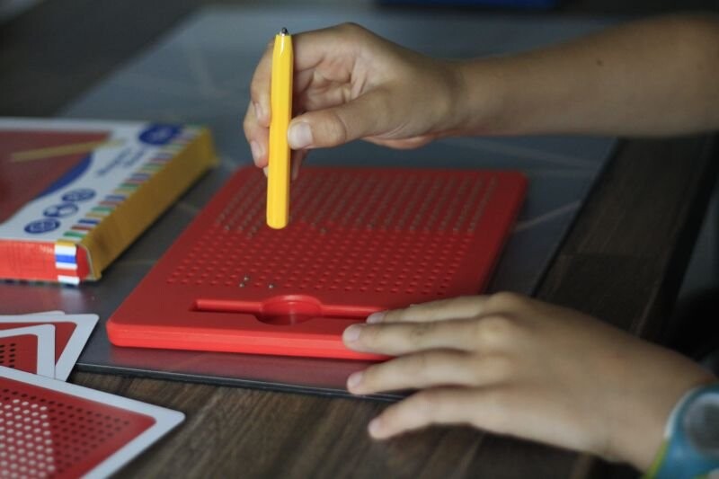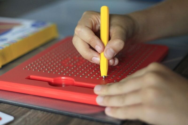 Детям понравится рисовать на магнитной доске Apli Kids! Все, что им нужно сделать, это провести карандашом по доске так, чтобы маленькие магнитные шарики поднялись и образовали рисунок. Прилагаемые листы с примерами рисунков помогут вам освоиться в новой технике «рисования». Игра с магнитной доской прекрасно развивает моторику и стимулирует воображение ребенка. Кроме того, с его помощью можно научиться считать. Ребенок может проверить, сколько шариков понадобилось для создания заданного рисунка. Магнитная доска Apli Kids идеально подходит для игр во время путешествий.