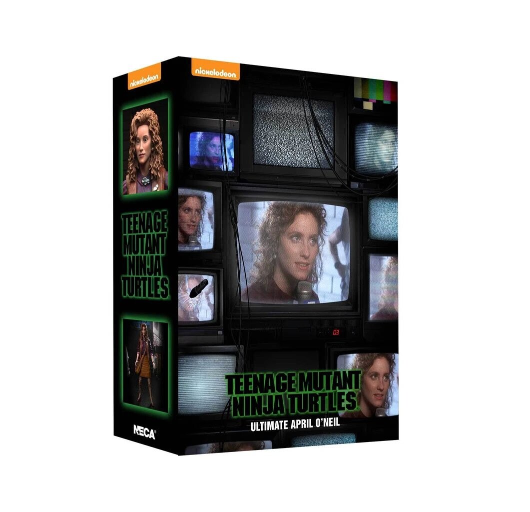 Фигурка Эйприл О'Нил из фильма 1990 года «Черепашки-ниндзя» Рост примерно 18 см. Производитель NECA Также за беспрецедентной волной преступности в городе следит бесстрашная репортерка Третьего канала Эйприл О'Нил, которая наконец сталкивается лицом к лицу. с Черепахами, когда Рафаэль спасает ее от клана Фут, Эйприл очень выразительна, очень подробна и верна фильму, с авторизованным подобием Джудит Хоаг. Фигурка ростом 18 см (7 дюймов) имеет сменную голову и руки, микрофон третьего канала, сумку и аксессуары.