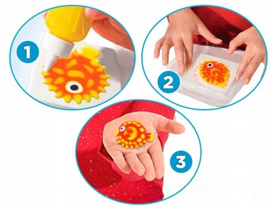 БЫСТРО И ЛЕГКОПорошок Aqua Gelz необходимо хорошо перемешать в емкости с водой б>а когда он будет готов, погрузите его в воду, аккуратно перемещая его влево-вправо. Гелевое существо всего за несколько секунд превращается из плоского рисунка в чудесную трехмерную фигурку. Он сам вытечет из формы, и с ним можно будет поиграть. ИЗВЕСТНЫЙ И УВАЖАЕМЫЙ БРЕНД