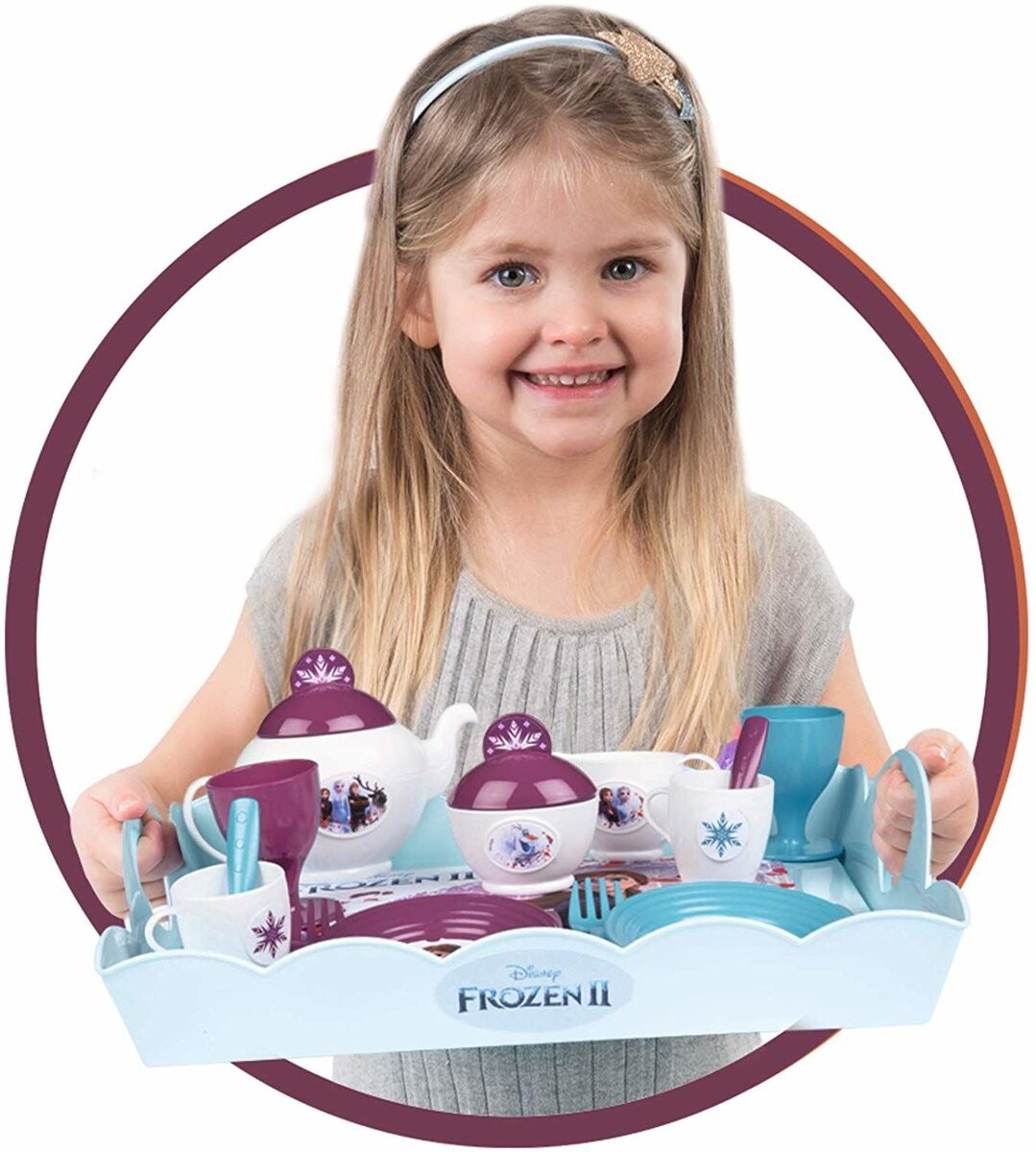 - 2 тарелки двух цветов - синяя с графикой с изображением Эльзы и фиолетовая с Анной