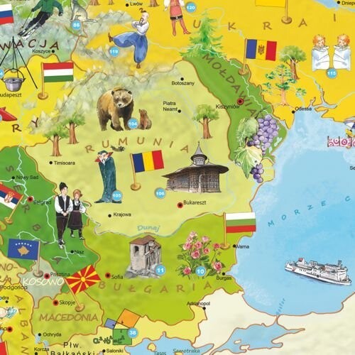 Это делает карту увлекательным источником знаний об истории и настоящем нашей планеты. В ней в интересной форме представлены сведения о географии, природе и культуре. Он стимулирует воображение, побуждает к приобретению знаний и вдохновляет. Это также отличный повод для творческого времяпровождения родителей и детей.