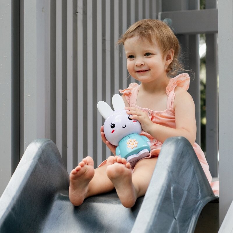 - Безопасность детей гарантируют сертифицированные материалы. Однако благодаря специальному прочному материалу ABS, который в 30 раз прочнее обычного пластика, кролик устойчив к ударам и падениям.