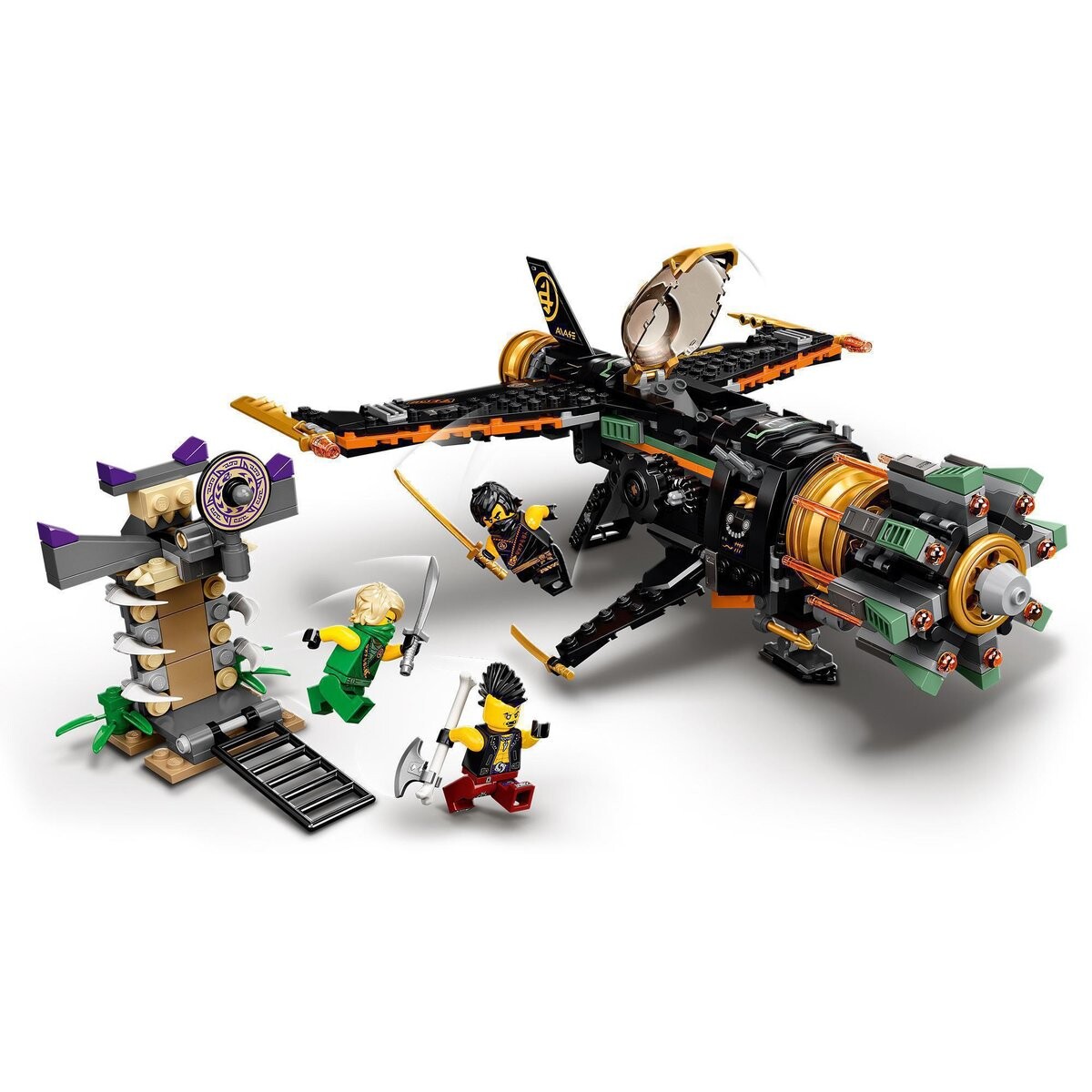 Поклонникам ниндзя понравится эта обновленная версия Камнедробилки 71736 со стреляющим самолетом, позволяющим воссоздать захватывающие сражения с 4. сезон серии LEGO NINJAGO. Игрушечный самолет имеет 8 скорострельных подпружиненных пушек, установленных на вращающейся передней части. Дети могут стрелять снарядами в Эйзора или поражать клетку, в которой враги поймали Ллойда.