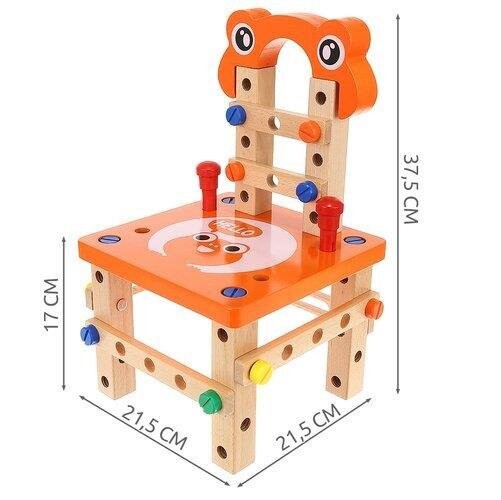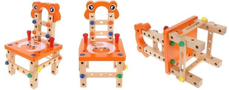 3в1 — у одной игрушки целых 3 применения! Он сочетает в себе стул, мастерскую и возможность строить различные конструкции. Помимо традиционной мастерской, ребенок может построить машину, самолет, робота и многие другие проекты, единственное ограничение – воображение.