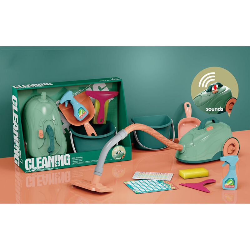 Большой набор для чистки. В комплект входит пылесос, ведро, совок, распылитель, губка и машина для сбора воды. Пылесос на батарейках — 2xAA (не входят в комплект). Размеры упаковки: 47 x 30,5 x 16,5 см.