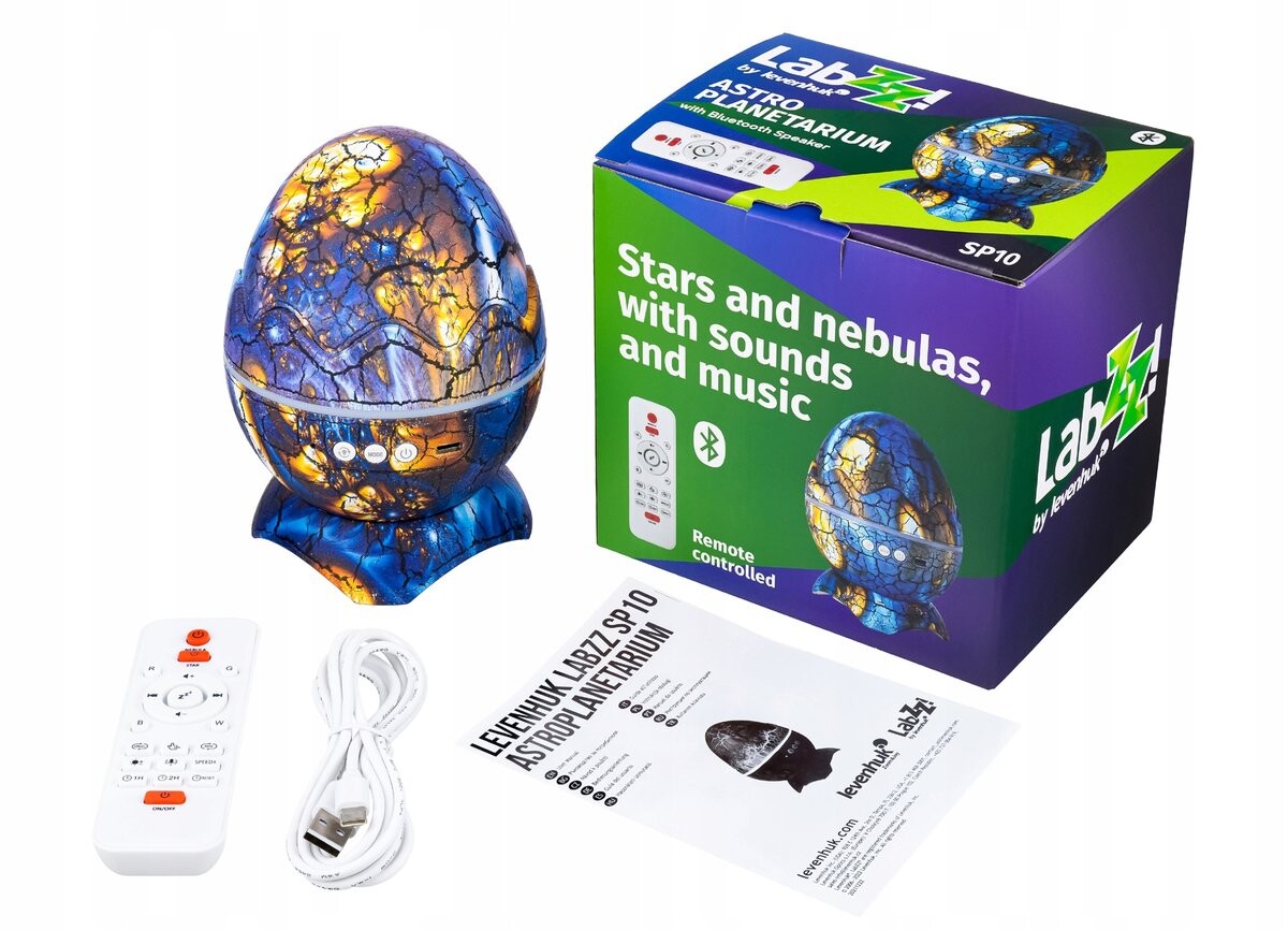 Астропланетарий Levenhuk LabZZ SP10 — космический проектор, сочетающий в себе уникальный дизайн и множество мультимедийных функций. Устройство позволяет наслаждаться проецируемым на стены видом пространства под любимую музыку из встроенного динамика. Понравится и детям, и взрослым. Он подчеркнет характер любого помещения и развлечет гостей на вечеринке. По вечерам астропланетарий создаст неповторимую атмосферу, которая поможет вам расслабиться. Также доступен режим белого шума, который улучшает качество сна и ускоряет регенерацию.