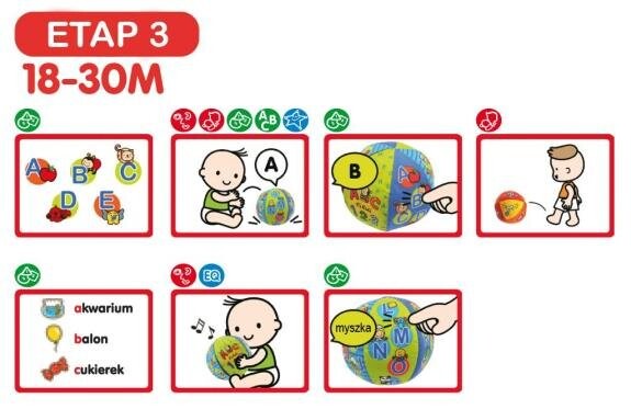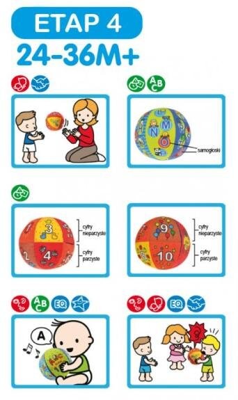 Консультант по развитию детей>Выберите подходящие развивающие игрушки для своего ребенка. Говорящий мяч – игрушка, которая поможет каждому ребенку выучить алфавит и счет от 1 до 10. Разноцветная, из мягкого, приятного на ощупь материала, идеальна для спортивных игр и идеальна мягкая игрушка. Как работает Говорящий Шар? Бросьте мяч ребенку, и вы услышите звук цифры, доносящейся из него. Когда ваш ребенок бросит вам мяч обратно, вы также услышите номер. И так от 1 до 10! Развлекаясь, ваш малыш быстро освоит основы счета и разовьет координацию движений и крупную моторику. Теперь просто поместите материал на шар, включите звуковой модуль и у вашего ребенка появится возможность выучить польский алфавит! Бросая вместе с ребенком, вы услышите буквы А, Б, В, Г. . . . и много других удивительных звуков! Говорящий Шар – это: отличная развивающая игрушка для детей от 6 месяцев: звуки польских цифр от 1 до 10, звуки польских букв алфавита, забавные звуки и песенки. Как играть с Говорящим Шариком? Этап 1 (6-18 м) Цель: Тренировка слуха. Метод: включите мяч в режиме счета/музыки. Коснитесь или бросьте мяч, чтобы он заговорил. Понаблюдайте за реакцией вашего ребенка и следит ли он за ней глазами. Цель: Ползание – отработка крупной моторики. Метод: Поместите мяч перед ребенком и медленно катайте его, чтобы ребенок мог заползти за мячом. Цель: перевернуть книгу на другую сторону. Метод: Мяч двусторонний. Поощряйте своего ребенка перевернуть книгу другой стороной от алфавита к цифрам и наоборот. Это позволяет тренировать как мелкую, так и крупную моторику. Цель: катание. Метод: Пусть ребенок катает мяч по полу. Эта игра тренирует мелкую и крупную моторику рук и рук. Цель: бросок. Метод: Предложите ребенку бросить мяч. Эта игра тренирует мелкую и крупную моторику. 2 этап (12-24м) Цель: Изучение цветов. Метод: Разноцветный мяч идеально подходит для изучения цветов. Покажите ребенку разные цвета на шаре и назовите их вместе. Цель: Изучение чисел. Метод: Научите ребенка цифрам от 1 до 10, показывая их на мяче. Цель: научиться считать. Метод: Предложите ребенку научиться считать, используя картинки с цифрами на стороне мяча. Цель: Называть предметы. Метод: Поощряйте ребенка учить новые слова. используя картинки на стороне шара с цифрами. Цель: Изучение чисел на слух. Метод: переключите звуковой модуль в режим счета, затем бросьте или ударьте мяч. Слушая, ребенок учится правильному произношению цифр от 1 до 10. Вы также можете предложить ребенку считать с мячом. 3 этап (18-30м) Цель: Изучение алфавита. Метод: Вы можете научить ребенка алфавиту, используя буквы на мяче. Цель: Изучение названий предметов. Методика: Используя картинки на странице с алфавитом, вы быстро научите ребенка называть предметы, начинающиеся с букв от А до Я. Цель: Изучение алфавита на слух. Метод: используйте алфавитный режим, бросайте и ловите мяч вместе с ребенком вот так. для мяча, чтобы прочитать алфавит. Эта игра поможет вашему ребенку выучить алфавит. Родители также могут поощрять своего ребенка читать с мячом. Цель: Пробудить интерес ребенка к музыке. Метод: После произнесения алфавита мяч начинает играть алфавитную музыку. Цель: узнавать цифры и буквы. Метод: произнесите цифру или букву и предложите ребенку указать на нее на мяче. Цель: Узнавать предметы и животных. Метод: Назовите предмет или животное и предложи