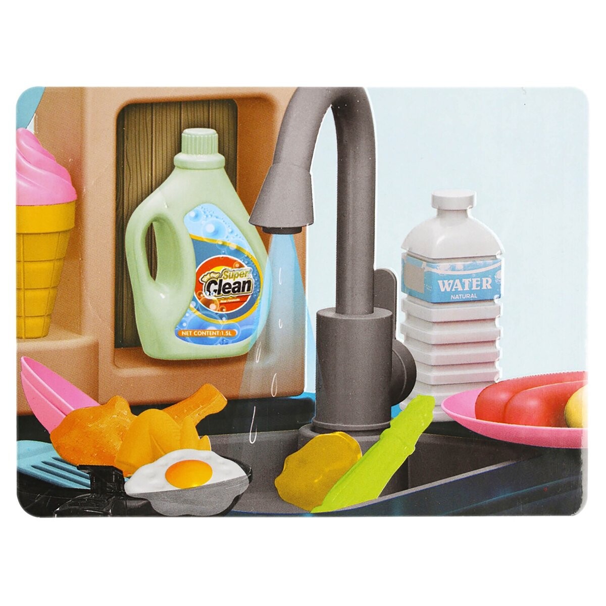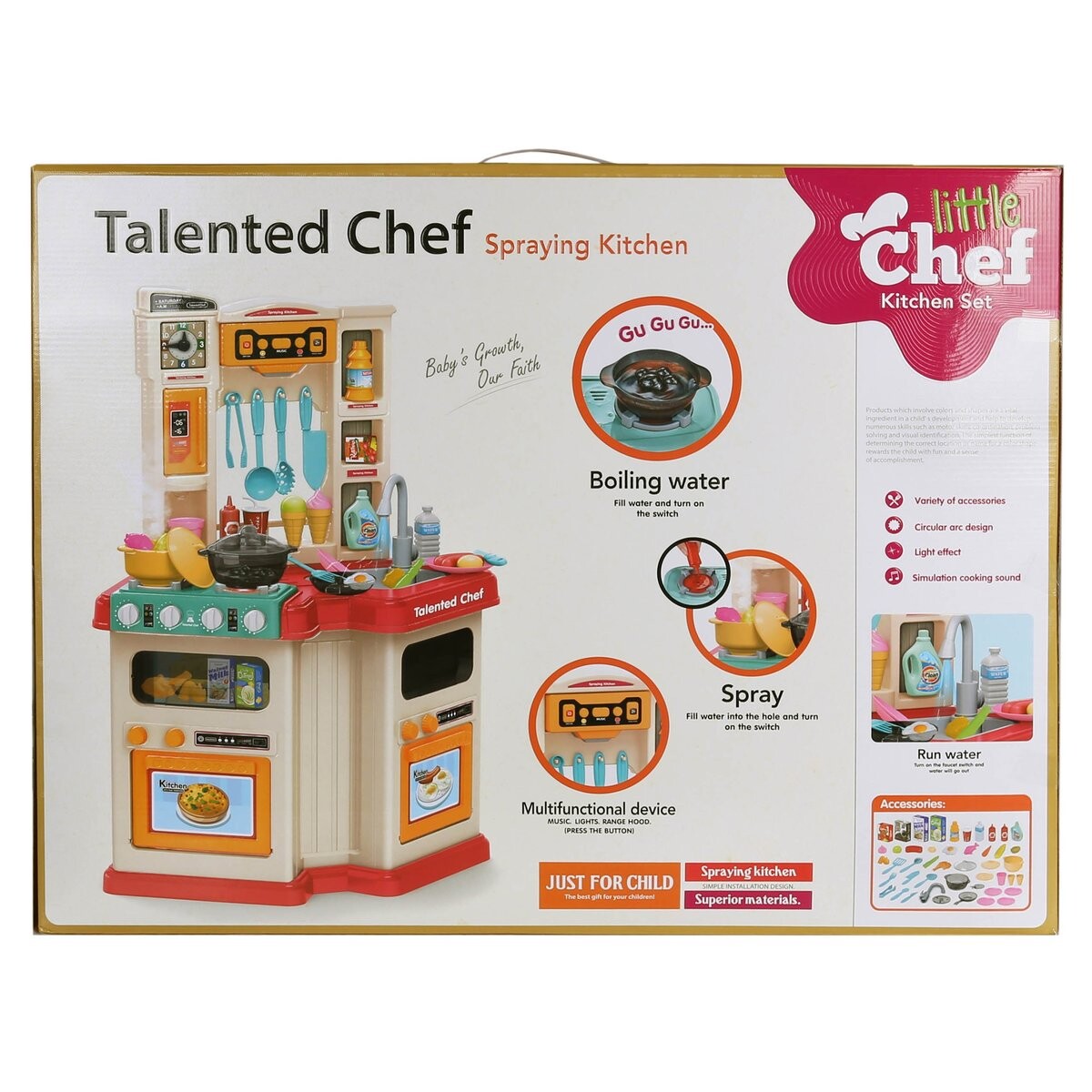 В комплекте: кухня, 2 кастрюли с крышками, сковорода, 4 тарелки, кружка, кружка с трубочкой, 2 рожка для мороженого, 4 бутылки, продукты, щипцы для мяса, половник. , нож, нож, лопатка для мяса, чайная ложка, вилка, ложка макароны.