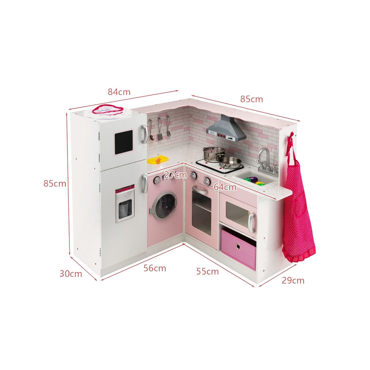 Дети могут играть роль кухонного повара, планировать меню на доске, пользоваться игрушечным ножом и резать. доска для приготовления еды. 5 кухонных принадлежностей из нержавеющей стали готовы к использованию. Как только маленький повар включит вытяжку и плиту, раздастся реалистичный звук и мерцающий свет. После еды дети могут мыть кухонную утварь в раковине и хранить ее в шкафах. Что касается прочности и устойчивости, игровой набор имеет прочную деревянную конструкцию.