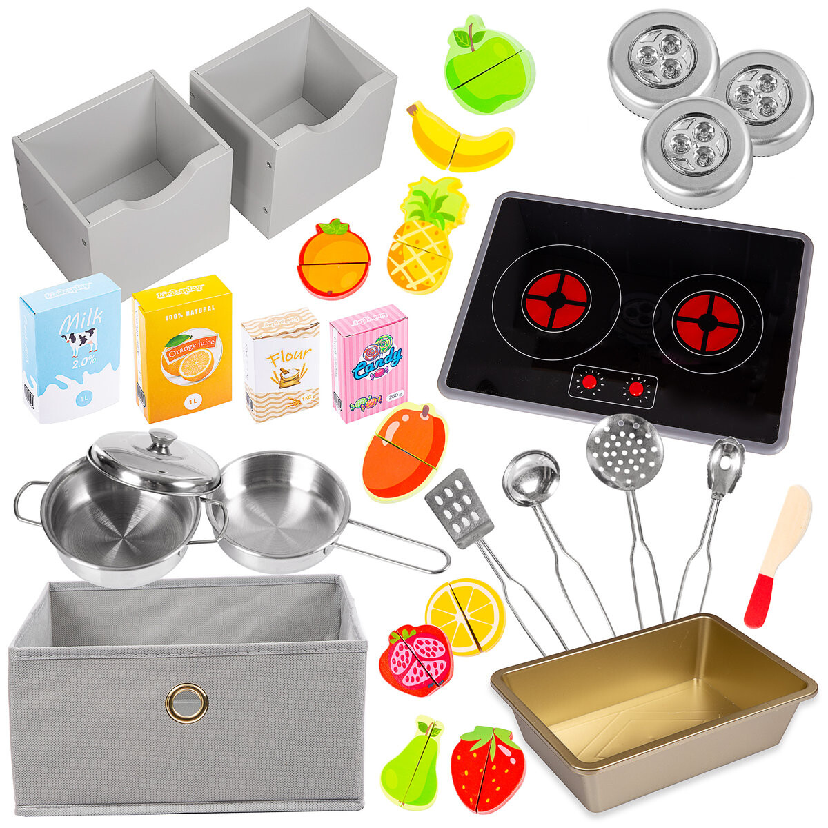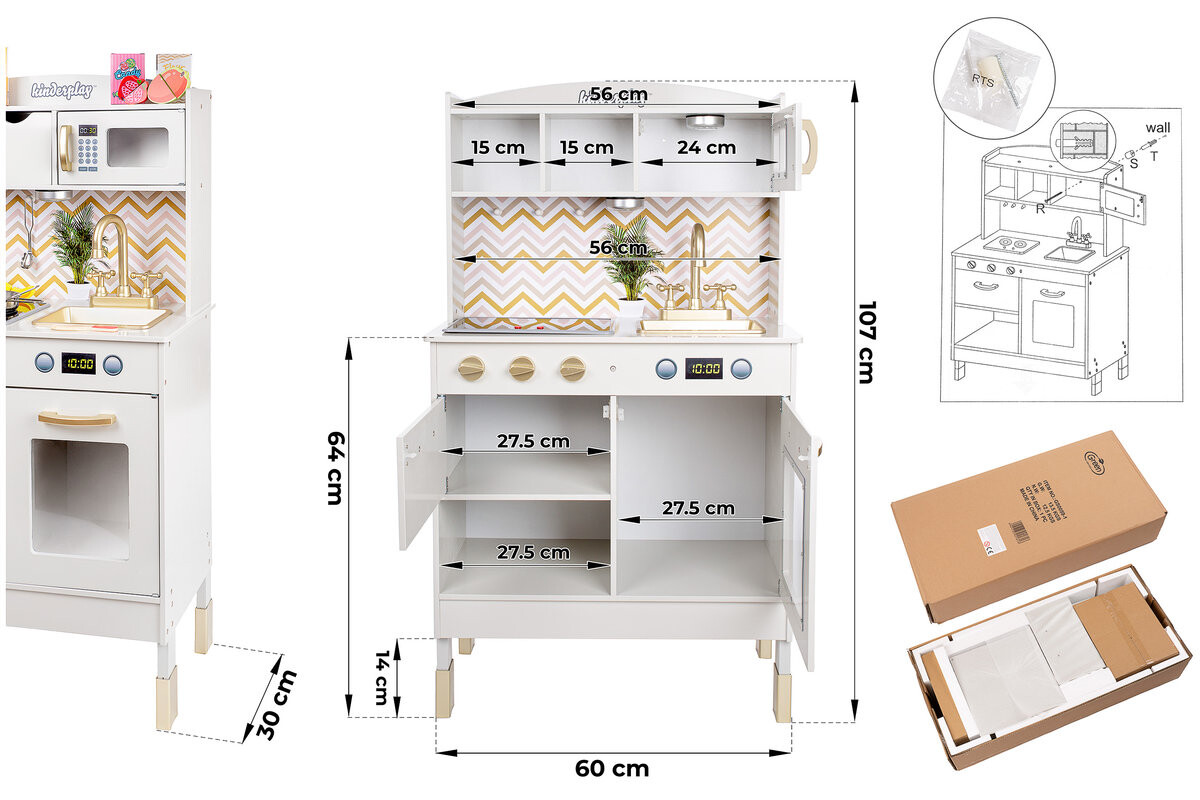 Кухня оборудована съемными ящиками и корзиной. Хранение игрушек, то есть поддержание порядка в комнате вашего ребенка. В комплект входят 2 ящика и 1 корзина.