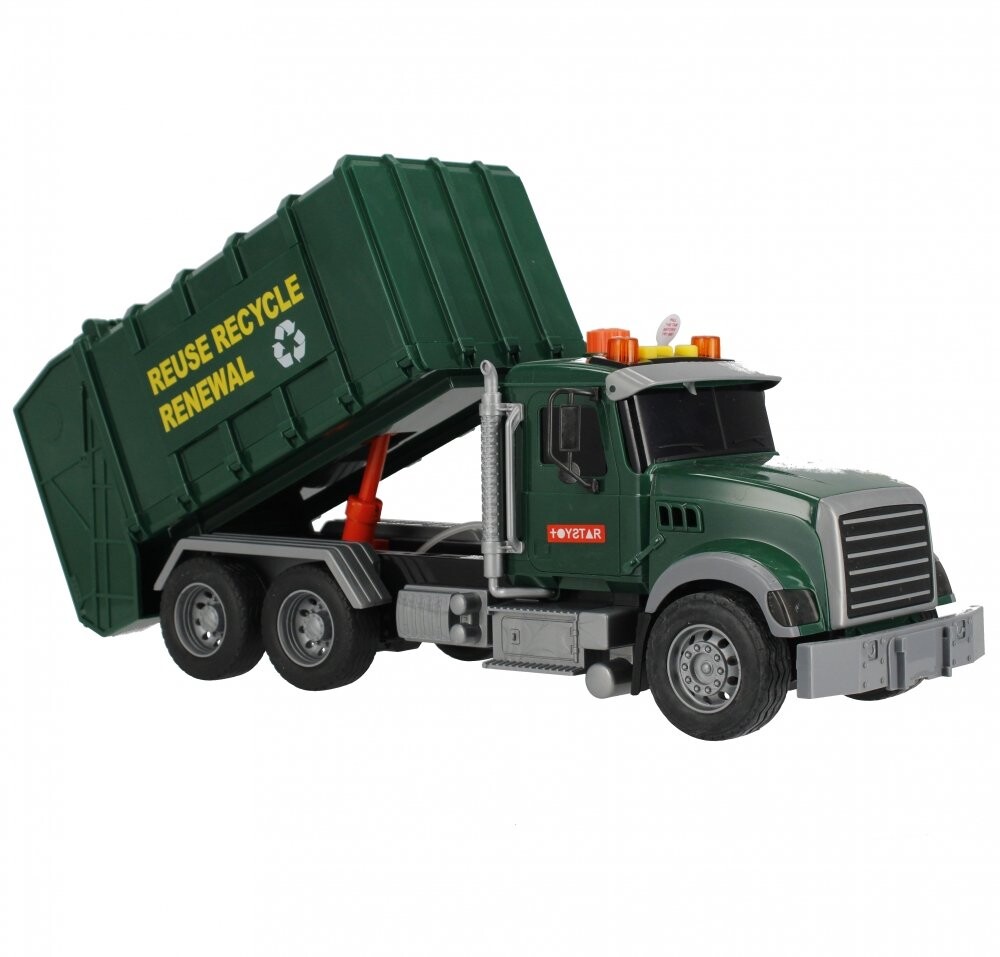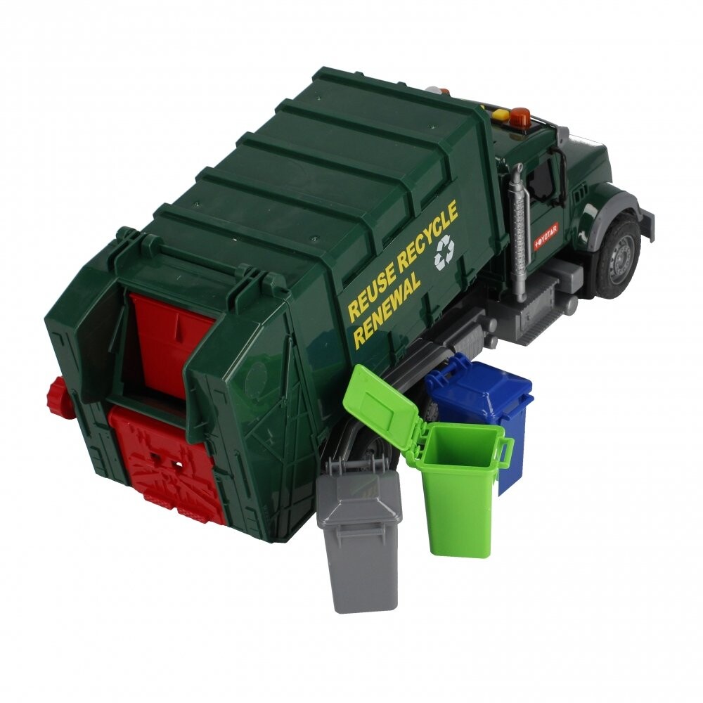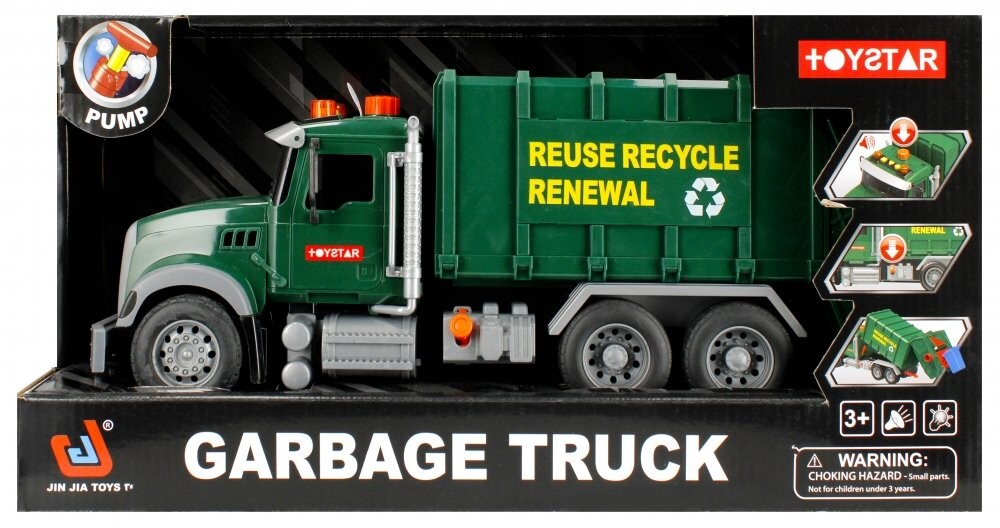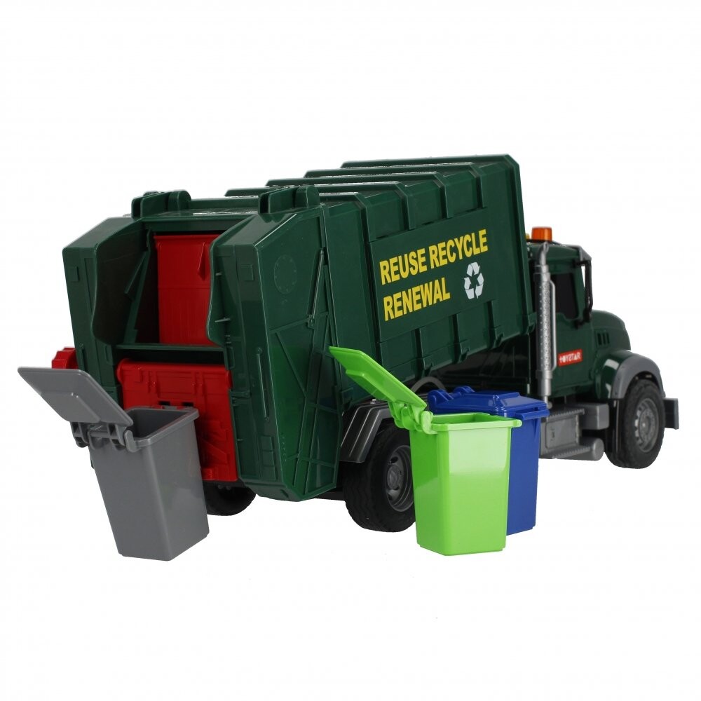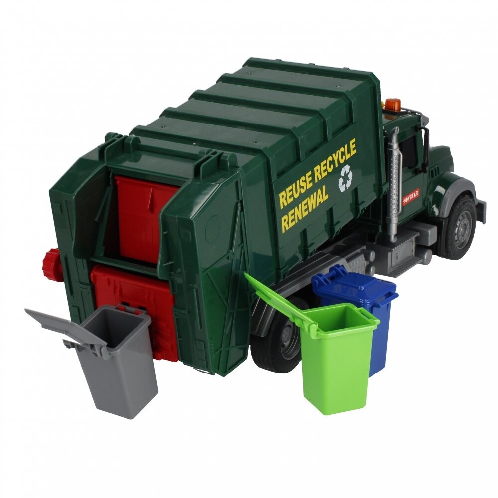 Преимущества продукта: развивают воображение, учат заботиться об окружающей среде и сортировать мусор, у машины есть функция pull&back, поэтому после толчка они продолжают движение самостоятельно. Мусоровоз MEGA CREATIVE станет отличным помощником при обучении ваших детей принципам сортировки мусора и заботе об окружающей среде. Играя с любимой машинкой, ваш ребенок приобретет необходимые для нашей планеты знания. У мусоровоза есть движущиеся части, световые и звуковые эффекты - звук запуска двигателя и звуковой сигнал. Дополнительной достопримечательностью этого мусоровоза является кнопка «Насос», которая активирует подъемник и с помощью кнопки, расположенной сбоку автомобиля, опускает подъемник, что облегчает погрузку/разгрузку. В комплекте: Мусоровоз. Игрушка из пластика. Размеры/вес/батарейки: размеры изделия длина х высота х глубина см: 35x15x13, размеры упаковки: х высота х глубина см: 42х22х14, вес изделия без упаковки кг: 0 64 кг, вес изделия в упаковке кг: 1,00 кг, необходимы 3 батарейки AG13 - входят в комплект. Набор предназначен для детей от 3 лет. Упаковано в коробку с окошком. В коллективной картонной упаковке по 18 штук.