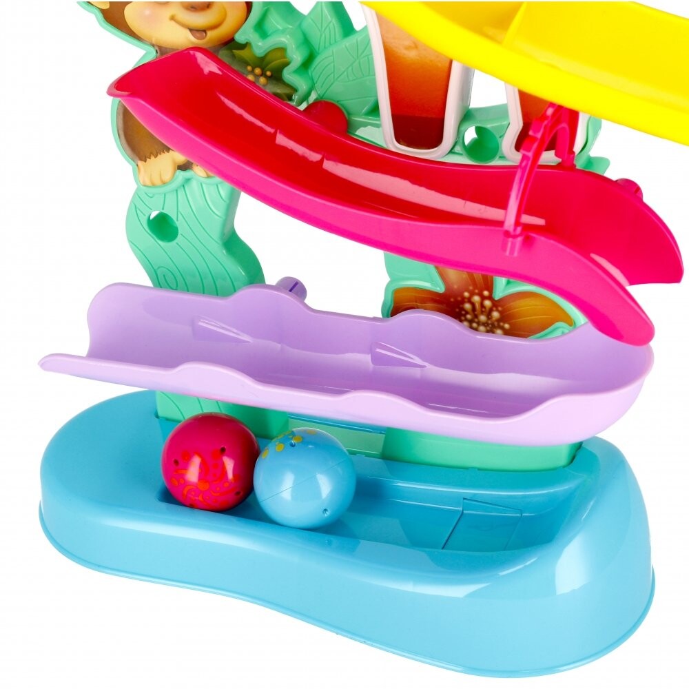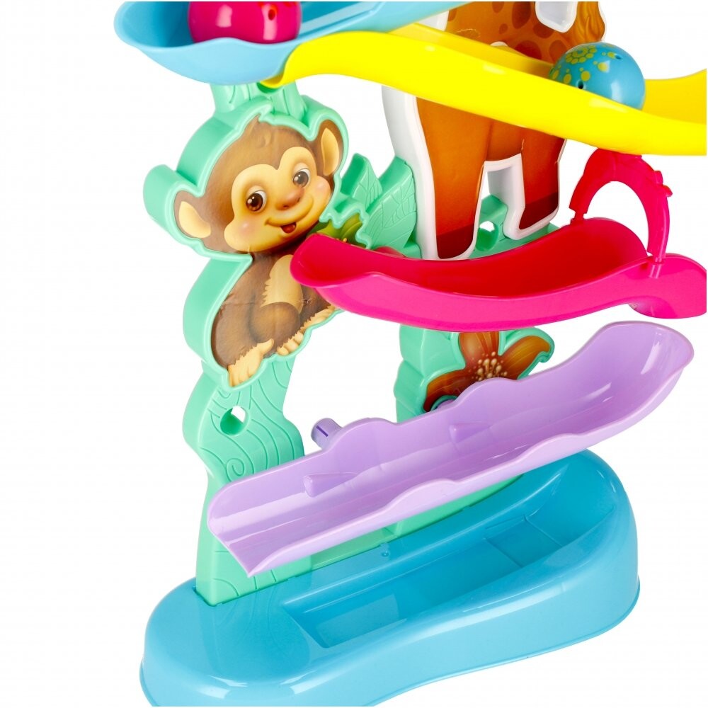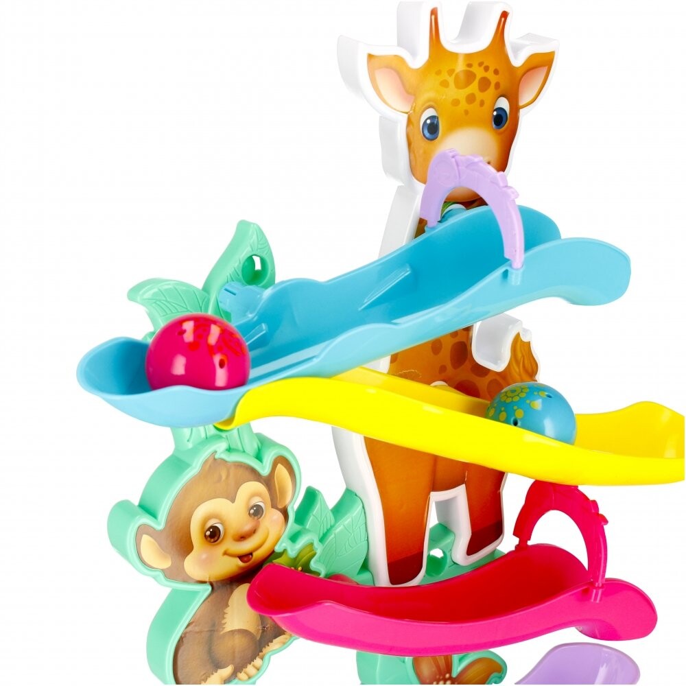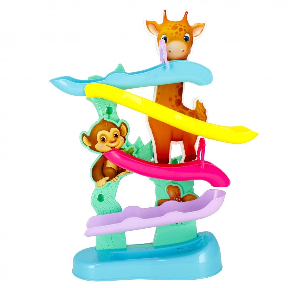 Преимущества продукта: развитие ручного труда ребенка, развитие строительных навыков. Игрушка прекрасно стимулирует воображение и обучает основам логического мышления. Позвольте вашему ребенку развивать свое воображение и использовать игрушку везде, где это возможно. Поместите мяч в соответствующее место в верхней части дорожки и позвольте ему катиться вниз, преодолевая все препятствия, с которыми он сталкивается. Как только мяч пройдет через положение на фигурке животного, он сначала сделает 1-2 круга на месте, а затем продолжит движение. катаясь по бокам. В комплекте: Дорожка с 2 мячами. Все сделано из пластика и картона. Размеры/вес/батарейки: размеры изделия длина х высота х глубина см: 40x48x13, размеры упаковки: длина х высота х глубина см: 43x38x8 вес изделия без упаковки кг: 0,59 кг, вес изделия в упаковке кг: 0,83 кг, необходимы 2 батарейки AALR06 - в комплект не входят. Набор предназначен для детей в возрасте: 12М. Упаковано в картонную коробку. В коллективной картонной упаковке по 18 штук.