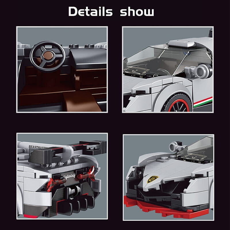 Представляем модель спортивного автомобиля Veneno от MOLD KING. Этот набор из 398 предметов поставляется с полноцветными инструкциями, которые помогут вам легко его собрать.