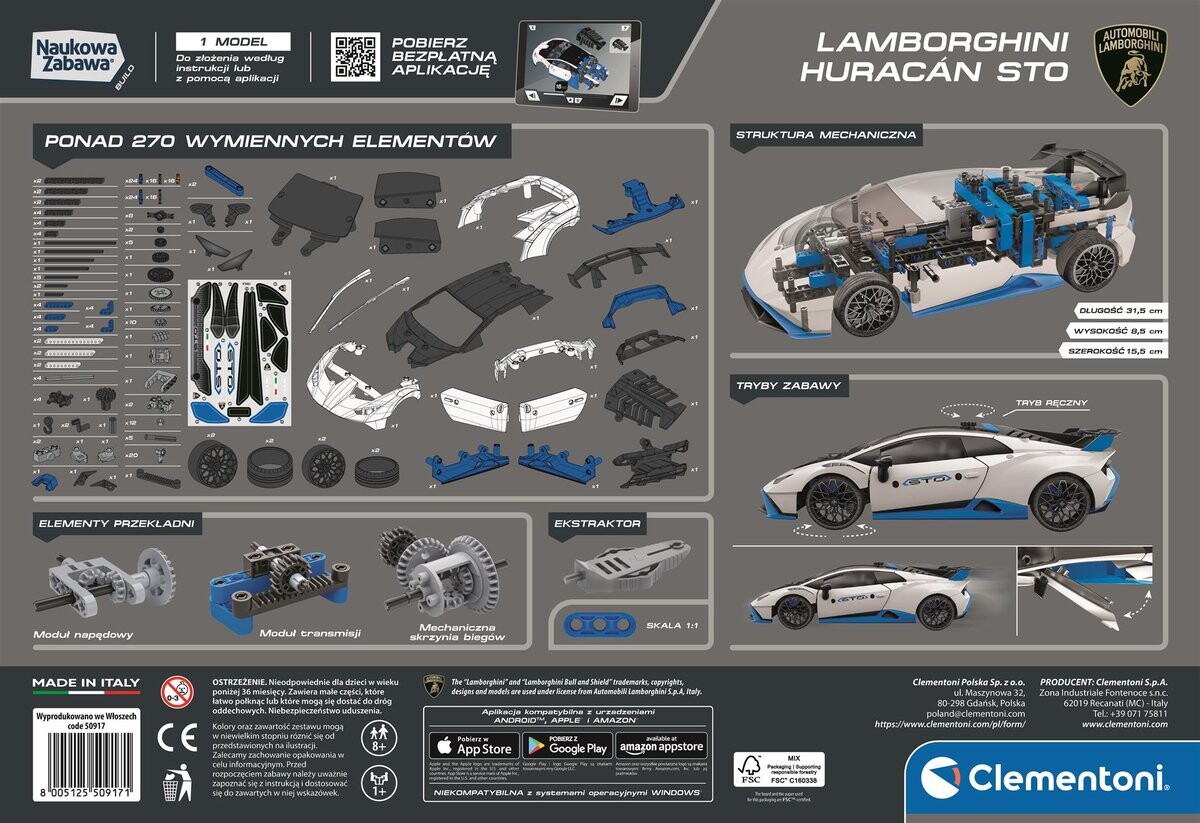 Более 250 деталей, которые можно собрать, чтобы собрать по-настоящему реалистичную модель Lamborghini. С реечным механизмом и двумя режимами игры: ручным и моторизованным, которые можно активировать с помощью ручного переключателя. Бумажная инструкция и приложение с 3D-инструкциями проведут ребенка на различных этапах сборки.