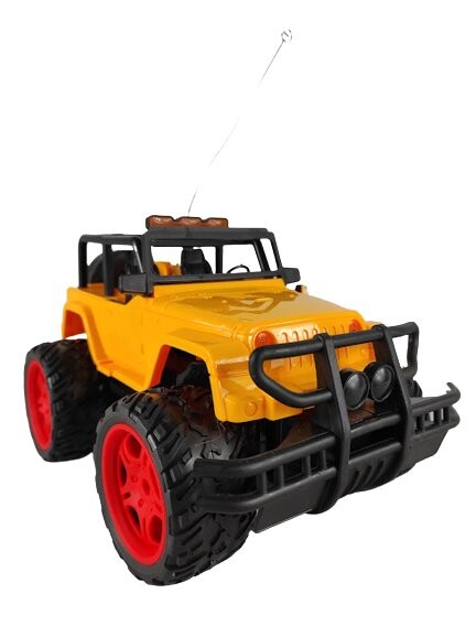 Большой внедорожник с резиновыми шинами красного или желтого цвета, управляемый с помощью пульта дистанционного управления
