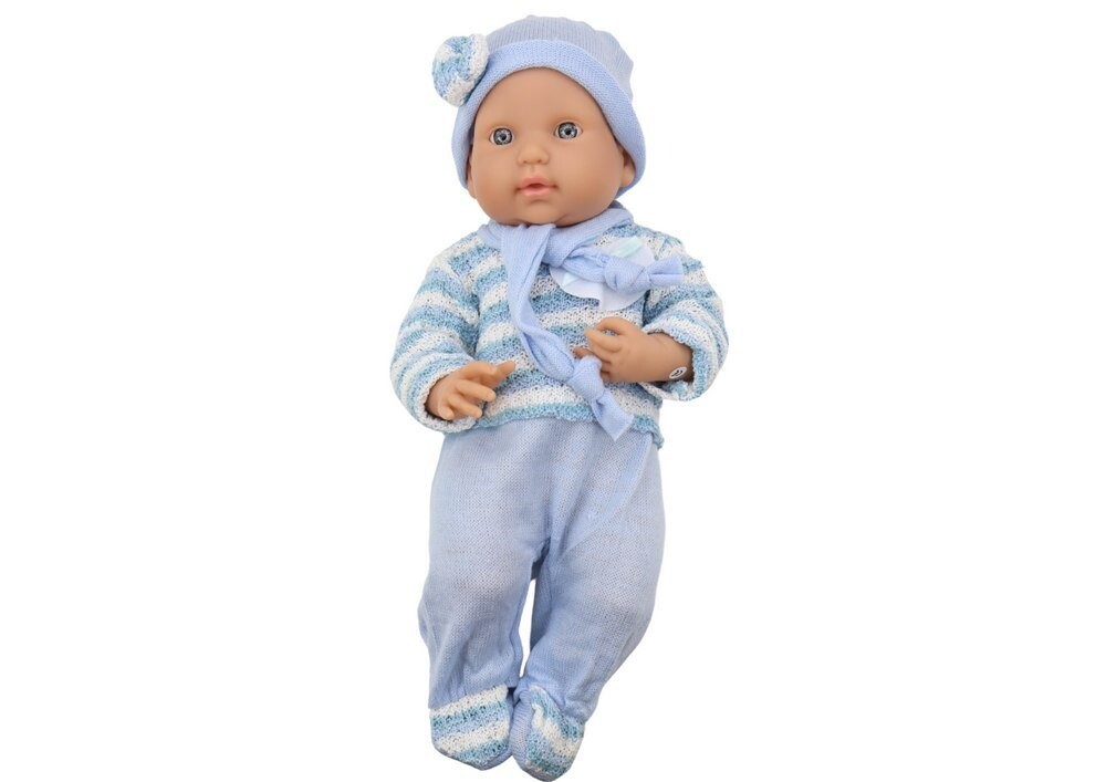 Кукла в синем наряде — идеальный компаньон для каждой маленькой воспитательницы. Ее очаровательный свитер в сине-белую полоску, шляпа и шарф делают ее очаровательной. У него подвижные руки и ноги, которые можно легко перемещать и устанавливать в разные положения, что добавляет реалистичности и возможности взаимодействия во время игры.
