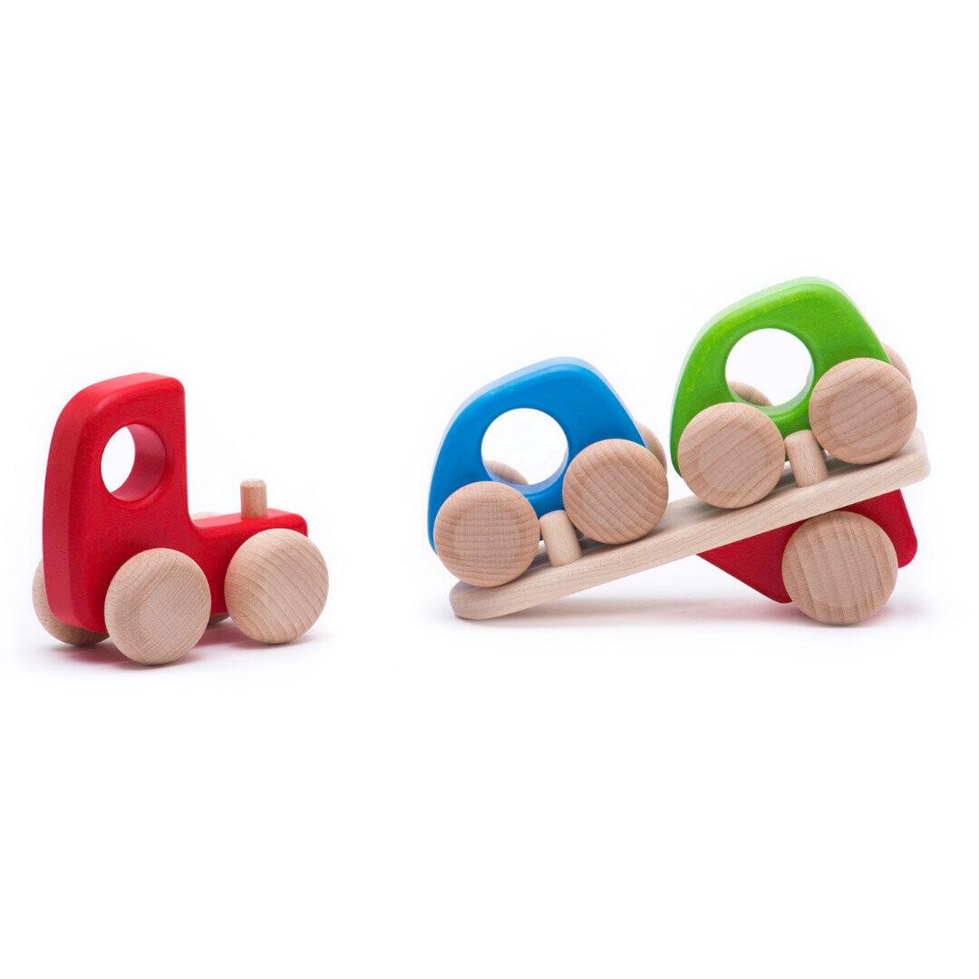 Это работа автоперевозчика. Сколько автомобилей может вместиться одновременно? В этот грузовик вмещаются два небольших автомобиля, и их поездка проходит без каких-либо повреждений, поскольку прицеп оснащен специальными кронштейнами для крепления. Просто хорошо расположите в них машинки, и они не выпадут ни на одном углу. Игра с автовозом дает ребенку знания о транспортировке различных вещей. Он также способствует развитию крупной моторики, задействуя движения тела и рук.