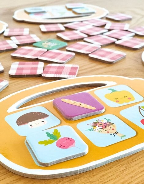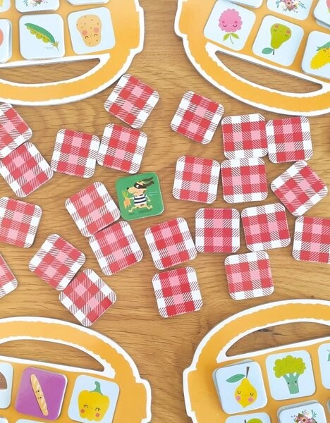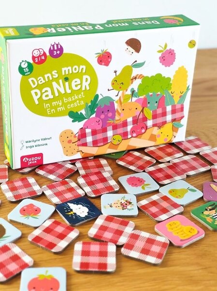 Игра «Корзина для покупок» от Auzou. Отправляйтесь на рынок и первым наполните свою корзину вкусными фруктами и овощами! Остерегайтесь опасных штормов и плохих яблок, которые усложнят вашу задачу! Это отличная игра для детей от 3 лет, а также станет отличной идеей для развлечения во время семейного игрового вечера. Задача каждого игрока – запомнить, где находятся карточки с овощами и фруктами, которые он должен купить и положить их в свою корзину, но он должен быть осторожен с сюрпризами, которые могут облегчить или усложнить его задачу. Остерегайтесь собак-воров, которые съедят содержимое вашей корзины!