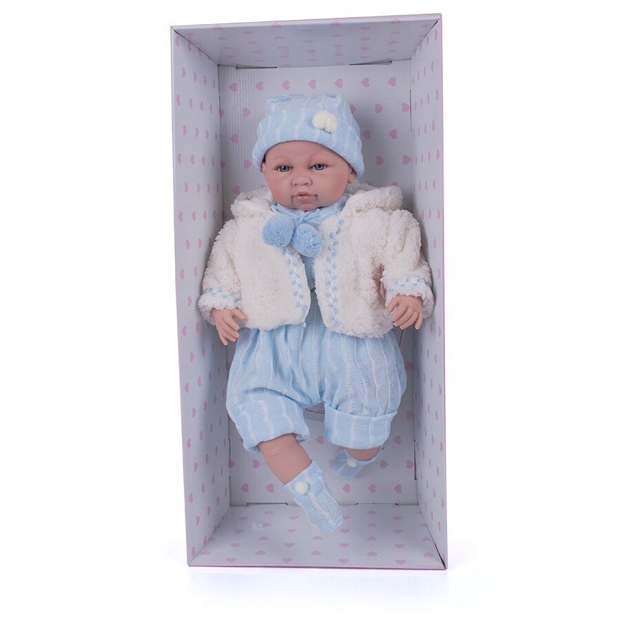 Оригинальная испанская кукла-мальчик представляет собой красиво сделанную куклу с мягким животиком . В комплект куклы входит одежда - мягкий свитер, шапочка и комбинезон с носками. Кукла сделана с вниманием к каждой детали, красивое личико и детализированные детали делают куклу похожей на настоящую! У куклы есть звуковой модуль, при нажатии на животик кукла издает звуки: Плач, Мама, Папа. Важнейшие преимущества пупса SAORO: