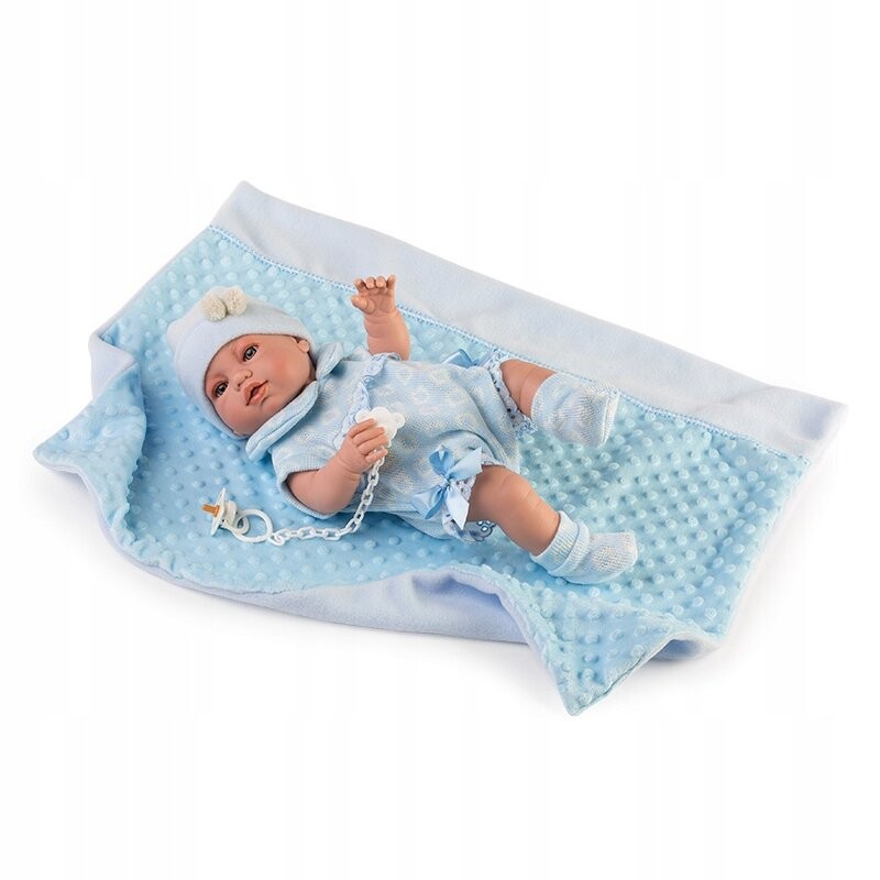 Оригинальная испанская кукла в комплекте в комплекте с одеждой - мягкий спальный мешок, шапка и носки. Кукла сделана с вниманием к каждой детали, красивое личико и детализированные детали делают куклу похожей на настоящего малыша! В комплект к кукле также входит соска на цепочке и синяя пеленка/одеяло. Вся кукла изготовлена из резины, поэтому отлично сочетается с различными дополнительными аксессуарами для куклы. Испанская кукла Манита: